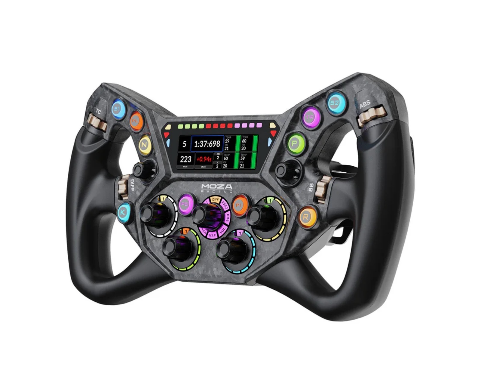 KS Pro Racing Ratt er et ratt fra Moza Racing som kombinerer innovativ design og høy ytelse for sim racing-entusiaster. Med en ergonomisk utforming og en skjerm på 2,99 tommer tilbyr rattets intuitive kontrollsystem en dyptgående og tilpassbar kjøreopplevelse. Den høyoppløste skjermen har en oppløsning på 268x800 og en oppdateringsfrekvens på 60 Hz, noe som muliggjør detaljert visualisering av viktig informasjon direkte under racing.Rattet er bygget av et karbonforsterket komposittmateriale som gir høy holdfasthet uten å kompromittere vekten, noe som resulterer i en struktur som sikrer en robust og lett design. Rattet er utstyrt med tilpassbare RGB-belysningssystemer med opptil 16,7 millioner fargekombinasjoner, noe som gir brukeren mulighet til å raskt identifisere innstillinger. Med ti RGB-omdreiningslamper og seks flagglamper kan føreren få sanntidsinformasjon om motoromdreininger og racetilstand. Rattets paddler er laget av magnetisk karbon med Hall-sensorer og tilbyr flere programmerbare funksjoner for smidig girskifting.