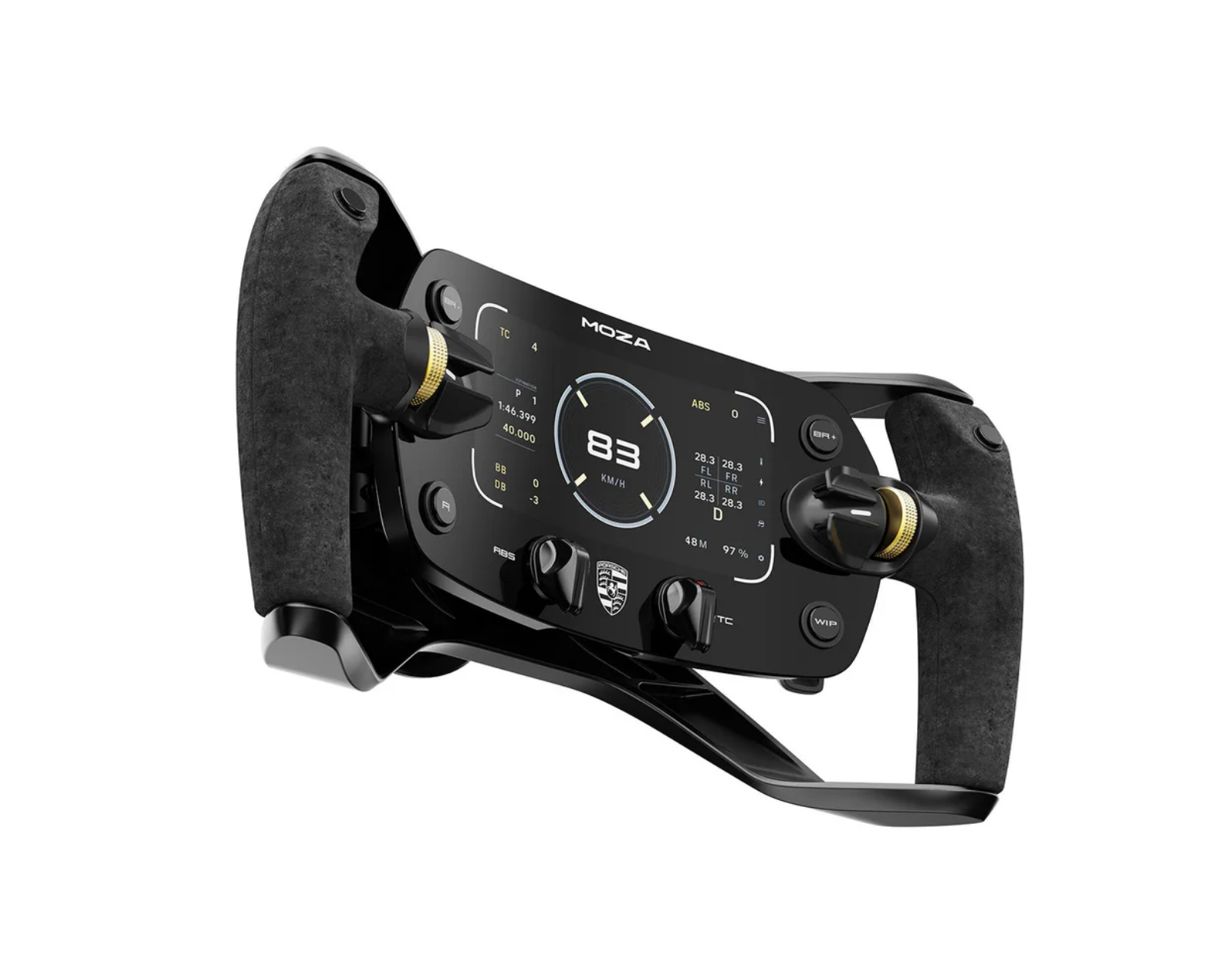 Porsche MISSION R Simracing ratt er et avansert racingratt fra Moza Racing, designet for entusiaster og gamere som søker en autentisk og ytelsesorientert følelse. Med en stilren og robust CNC-bearbeidet aluminiumsramme tilbyr dette rattet en eksepsjonell styrke og stabilitet. Den har en 5,4 tommers fleksibel OLED-skjerm med 720P-oppløsning som gir sanntidsdata om hastighet, rundetider og mye mer.Rattet kjennetegnes av sine grep, som er dekket med et premium faux-sude materiale for optimal komfort og kontroll. Den innebygde firekjernede prosessoren på 1,3 GHz muliggjør rask rendering med minimal forsinkelse, noe som skaper en sømløs og responsiv brukeropplevelse når du konkurrerer. Med fleksibiliteten til et åpent økosystem kan dette rattet enkelt kobles til forskjellige sim-racing baser og brukes i et bredt spekter av racingapplikasjoner. Det har også et tilpassbart UI-system for å muliggjøre individuelt tilpassede dashbords og visninger.