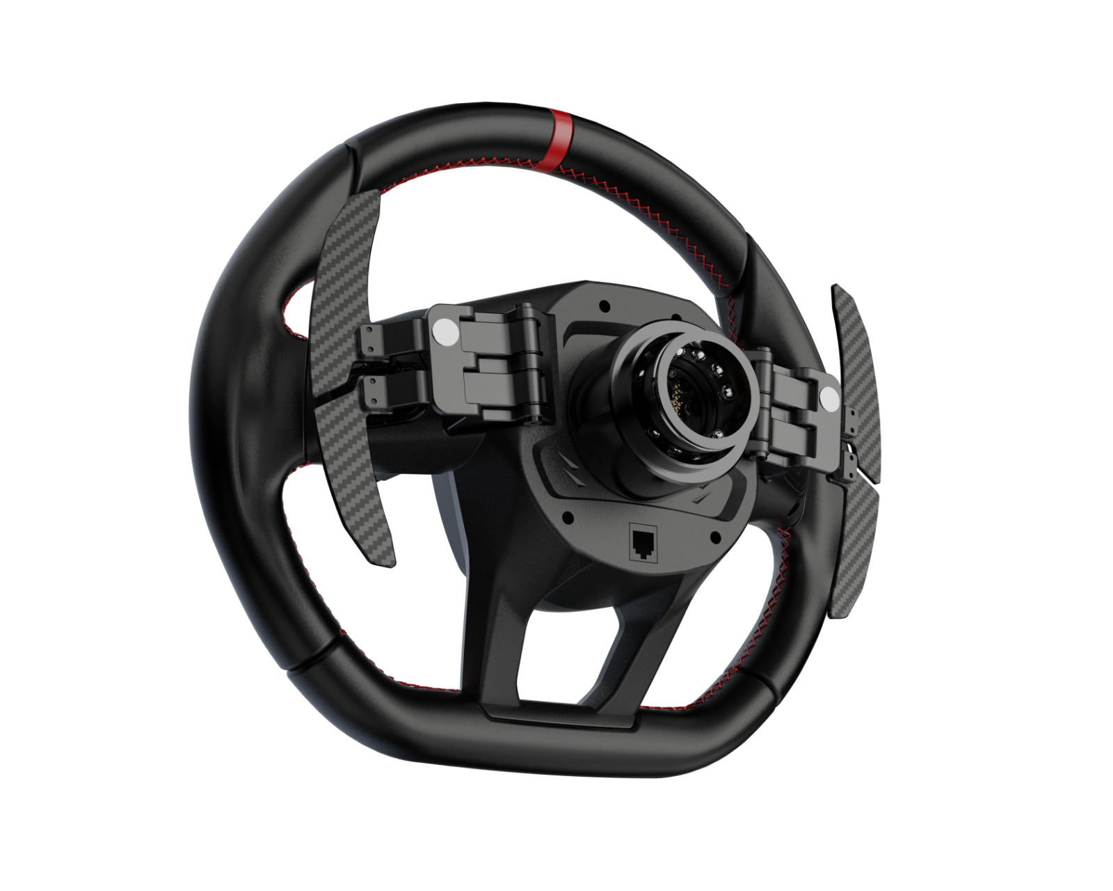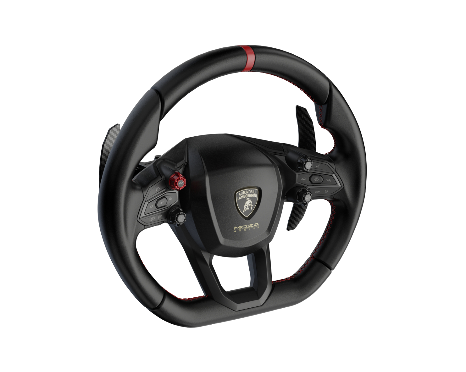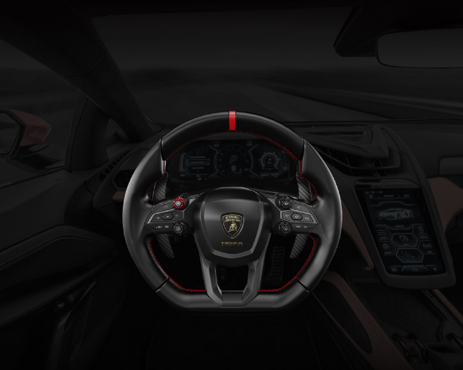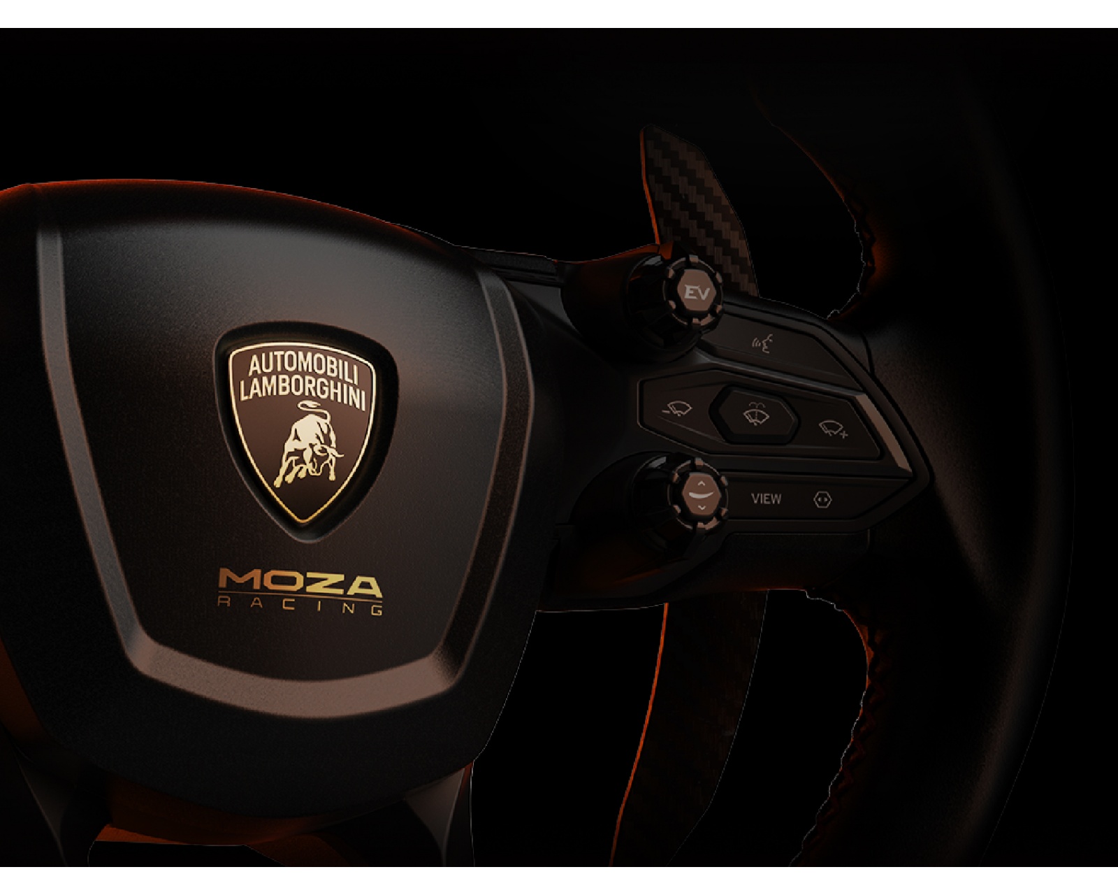 Revuelto Lamborghini er et høykvalitets sim racing-ratt fra Moza Racing som etterligner styringen fra hyperbilen Revuelto. Den tilbyr en autentisk kjøreopplevelse med nøye reproduksjon av detaljer og er designet for sim-racingentusiaster som verdsetter både ytelse og design. Rattet er offisielt lisensiert av Automobili Lamborghini og bygger på originale CAD-data, noe som gir en virkelighetsnær følelse.Byggkvaliteten i Revuelto-rattet er eksepsjonell, med en ramme i høystyrkig die-cast aluminium som gir både styrke og stabilitet. Den er kledd med mikrofiberlær, som ikke bare er holdbart, men også gir en luksuriøs følelse. Rattets ergonomiske grep er håndsydd i miljøvennlig materiale med en naturlig tekstur for maksimalt grep og komfort under lange spillsesjoner. I tillegg har rattet magnetiske væxlere i karbonfiber som tilbyr rask og nøyaktig tilbakemelding, noe som er avgjørende for racing. Med totalt 34 programmerbare innganger, inkludert 16 belyste knapper og 4 knotter, er det bygget for å møte komplekse racingbehov.