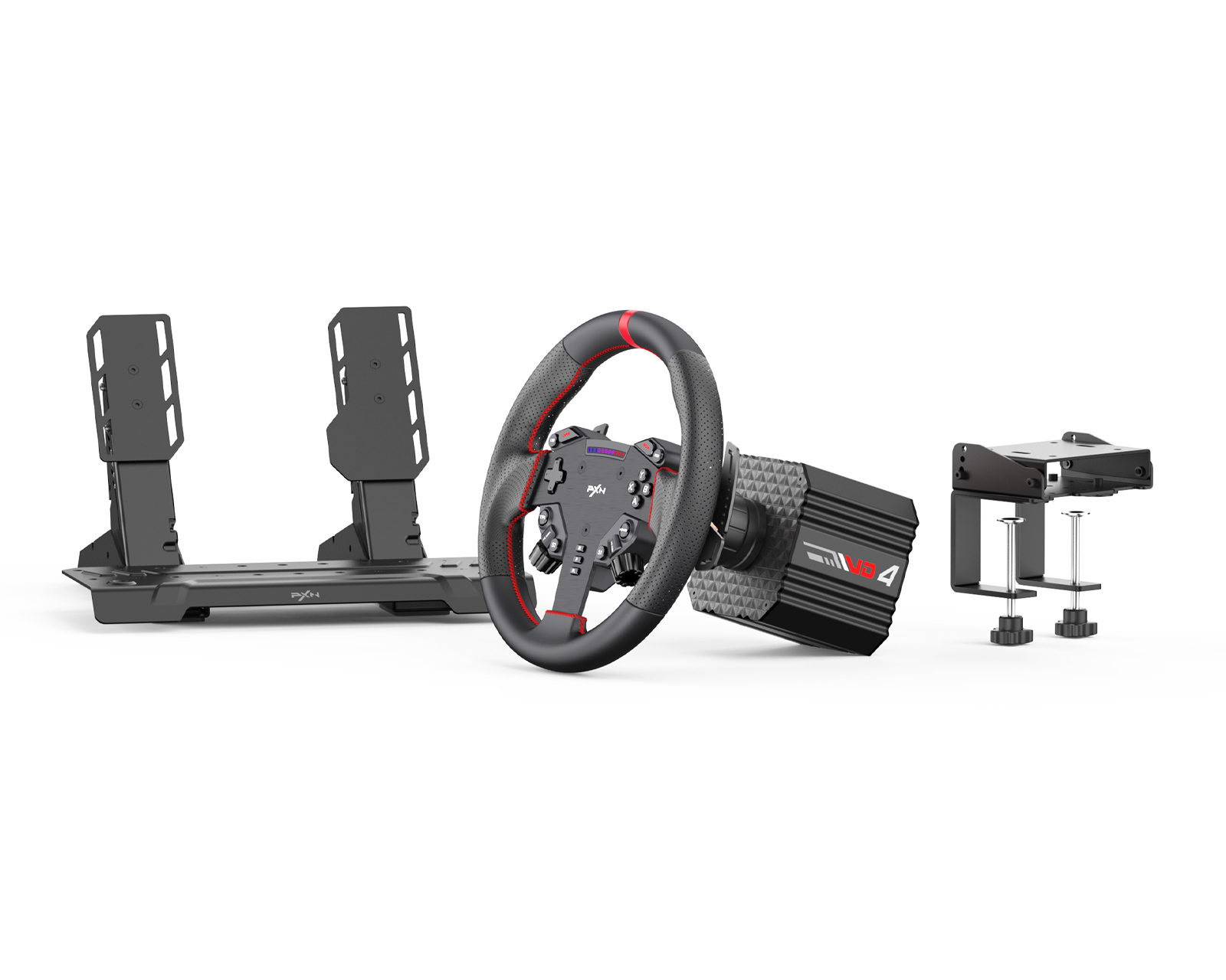 W AS racinghjul har en ramme av aluminiumlegering dekket med mikrofiberlær, som gir godt grep og komfort. Dette rattanlegget inneholder 19 programmerbare knapper, 2 vridbare håndtak og 4 paddle shifters for høy funksjonalitet. PD HM pedalene er helt i metall og bruker Hall-effekt sensorer for høy presisjon. Pedalenes høyde og vinkel er justerbare, noe som gir en tilpasset kjøreopplevelse. Modulen tillater enkel demontering og PXN-programvaren tilbyr kalibrering for pedalrespons.
