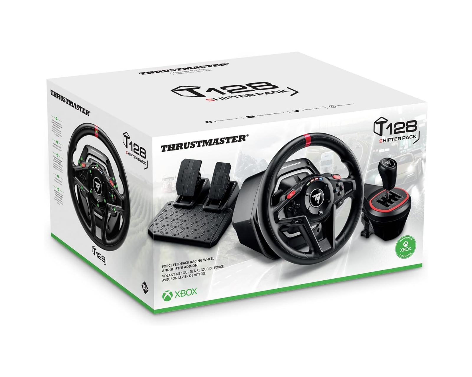 T128-X Shifter Pack er et ratt- og girspakepakke fra Thrustmaster som tilbyr en imponerende simracingopplevelse. Med den dynamiske Force Feedback-teknologien og det lette rattet hjelper dette pakket deg med å kjenne hver sving og rette opp på veien. Den medfølgende TH8S Shifter Add-On gjør det mulig å bytte manuelt med en "H"-mønstret girplate, som gir direkte tilgang til syv gir og en revers, perfekt for en rekke forskjellige kjøretøy og spill.Konstruksjonen av T128-rattet er både moderne og ergonomisk med en rotasjonsvinkel på opptil 900°, noe som garanterer fleksibilitet for ulike bilspill og racingstiler. De magnetiske padleväxlene gir rask og nøyaktig respons, mens den friksjonsfrie H.E.A.R.T-teknologien i girspaken sikrer at presisjonen opprettholdes over tid uten å bli påvirket av slitasje. T128-X Shifter Pack er også fullt kompatibel med PC (Windows 10/11), Xbox Series X|S og Xbox One, noe som gjør det til en allsidig løsning for gamere.