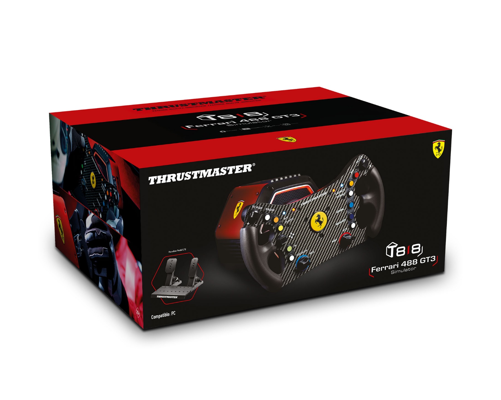 T818 Ferrari 488 GT3 Simulator er et racingpakke som kombinerer avansert teknologi med offisiell lisensiering fra Ferrari. Den består av T818 Direct Drive-basen, Ferrari 488 GT3 rattet og Raceline Pedals LTE pedalset, noe som gjør den ideell for seriøse gamere som søker en autentisk racingopplevelse. T818-basen leverer et konstant dreiemoment på 10 N·m med eksepsjonell respons, noe som gir umiddelbar tilbakemelding og følelse. Den robuste konstruksjonen av den nye T818-basen innebærer en forsterket kobling og optimalisert motor for økt pålitelighet.Sammen med My Thrustmaster Panel-programvaren kan brukere tilpasse Force Feedback og lagre innstillingene sine for en skreddersydd spillopplevelse. Ferrari 488 GT3 rattet som følger med er en livsstørrelsesreplika av høy kvalitet, utstyrt med 11 knapper, 4 encodere, en D-pad og Mag-Shift paddleveksler for rask og presis giring. Raceline Pedals LTE pedalset tilbyr også lufttrykk og justerbar konstruksjon, noe som gjør at brukere kan finjustere innstillingene sine for å passe til deres kjørestil.
