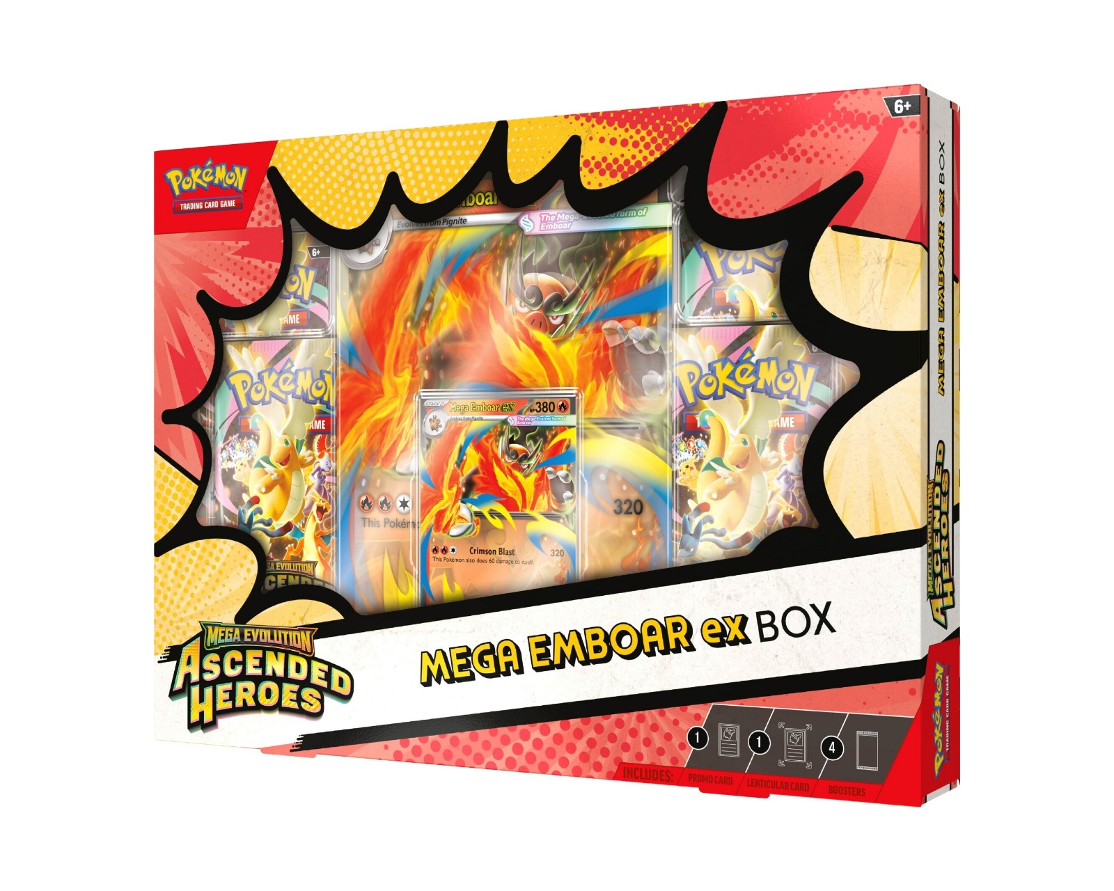 Mega Evolution-Ascended Heroes MEGA ex Box er et samlerprodukt fra Pokémon som inkluderer spennende innhold for både spillere og samlere. Boksen inneholder et foil promo-kort med Mega Emboar ex eller Mega Feraligatr ex og et oversized lenticular-kort, noe som gir en visuell dimensjon til samlingen. I tillegg inngår det fire boosterpakker fra Ascended Heroes, noe som muliggjør jakt på sjeldne kort og en kode for Pokémon Trading Card Game Live.Bygget for å tilfredsstille samlernes og spillernes behov, tilbyr Mega Evolution-Ascended Heroes MEGA ex Box en kombinasjon av kraft og visuell briljans. Promo-kortet med Mega Emboar ex byr på Crimson Blast-angrepet, kjent for sin evne til å påvirke kampstrukturen. Det lekre lenticular-kortet gir en dynamisk 3D-opplevelse, mens boosterpakkene gir muligheter til å utvide samlingen med flere kort, deriblant uslåelige legendariske Pokémon.
