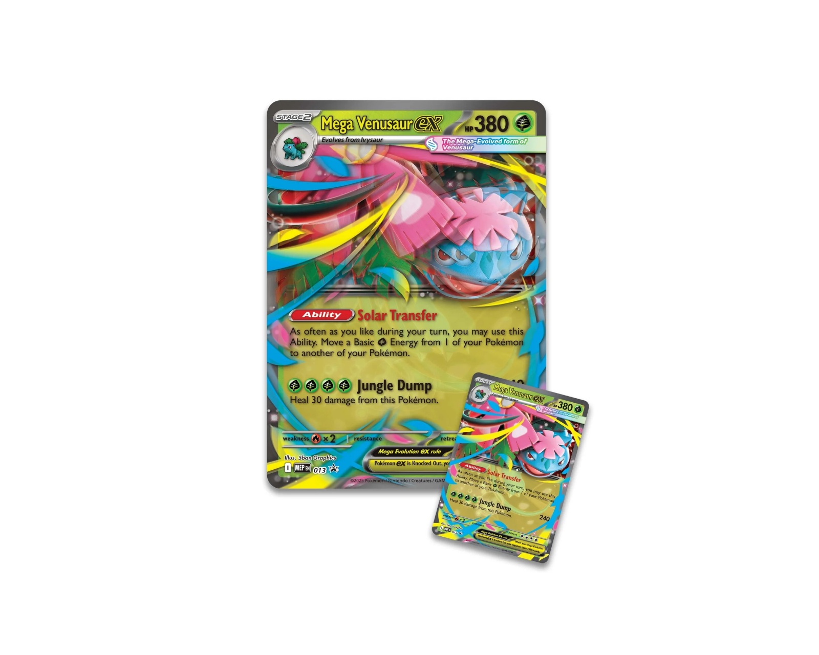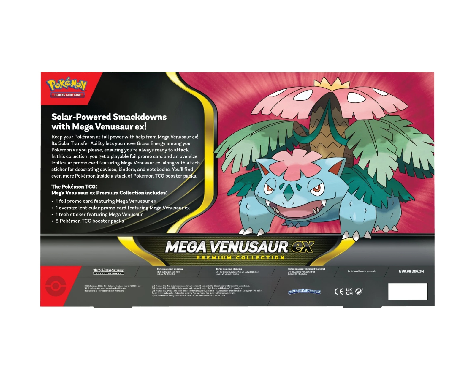 Max 1 per kunde.Mega Venusaur ex Premium Collection er en samling produkter fra Pokémon som inneholder en kombinasjon av spillbare kort og samleobjekter. Samlingen inkluderer et foil promo kort som viser Mega Venusaur ex, et stort lentikulært promo kort av samme figur samt et teknisk klistremerke for dekorasjon. Denne pakken er ideell for spillere som er interessert i å styrke sine kortstokker med kraftfulle kort og samle unike objekter. Det finnes også en bunke med Pokémon TCG boosterpakker for å utvide samlingen.