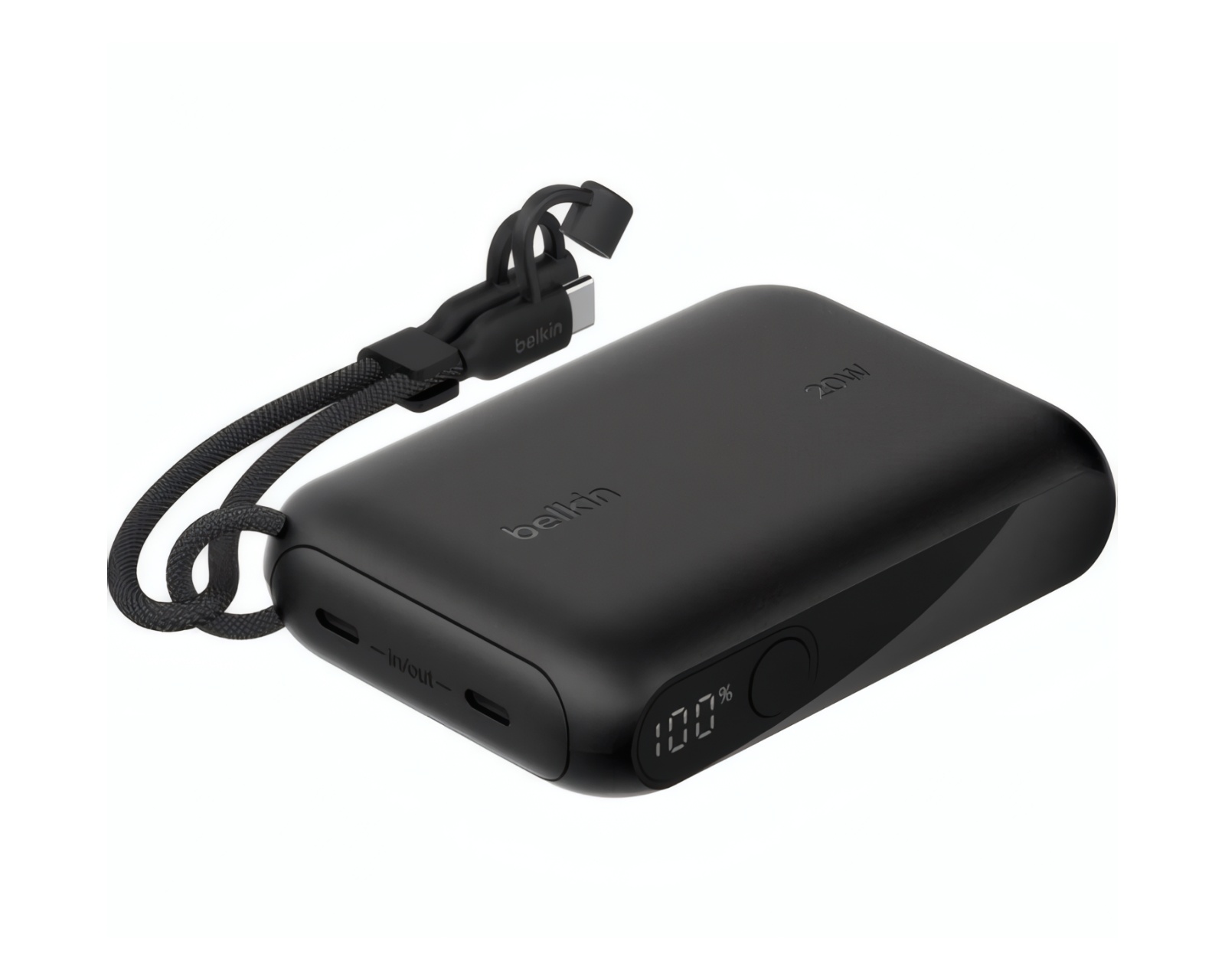 10k PD20W Powerbank med skjerm er en bærbar strømkilde fra Belkin designet for å gi pålitelig lading til flere enheter. Med en kapasitet på 10 000 mAh kan den lade de fleste telefoner minst to ganger. Den har muligheten til å lade opptil to enheter samtidig via sine USB-porter og har en effekt på opptil 20 W for hurtiglading. Produktet er ment for brukere som trenger pålitelig lading på farten.Enheten er utstyrt med litium-ion batteriteknologi og er oppladbar, noe som gjør den både bærekraftig og effektiv. Den medfølgende USB-C-kabelen muliggjør enkel lading av powerbanken, og dens LED-skjerm viser tydelig nåværende batterinivå. Viktige funksjoner inkluderer pass-through lading, som lar brukeren lade både powerbanken og tilkoblede enheter samtidig. Den er også godkjent av TSA for håndbagasje og laget av 72 % resirkulert plast, hvilket bidrar til et mer bærekraftig produkt.