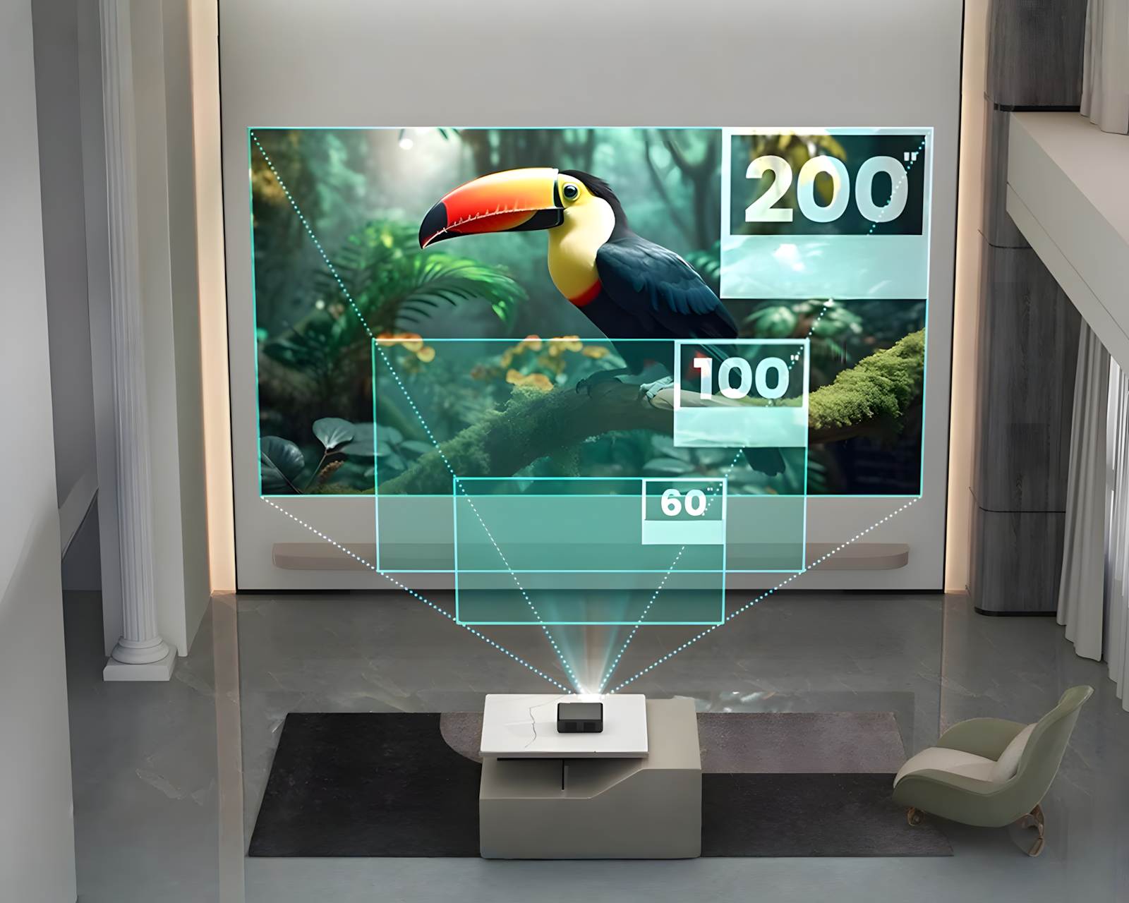 Eazze D1 Pro er en projektor fra Aurzen som tilbyr høy kvalitets bildegjengivelse med en native Full HD-oppløsning og støtte for 4K. Den er konstruert for hjemmeunderholdning, noe som gjør den egnet for filmvisninger, sportsarrangementer og spilling. Med innebygde høyttalere som bruker Dolby Audio-teknologi sikres en lydopplevelse av høy klasse.Projektoren er bygget med fokus på brukervennlighet og enkel installasjon. Den har en lysstyrke på 350 ANSI lumen, noe som gjør at den kan brukes i både mørke og lyse miljøer. Gjennom sin zoomfunksjon kan bildestørrelsen justeres fra 50–100%, noe som gir fleksibilitet ved plassering og tilpassing til ulike rom. Bluetooth-tilkobling muliggjør strømming av lyd til trådløse høyttalere, samtidig som flere porter for videoanslutninger som HDMI og USB gjør den allsidig. En mobilapp lar brukere styre projektoren direkte fra sin smarttelefon.