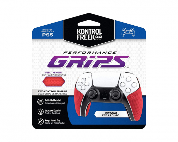 Performance Grips for PS5-kontrolleren (DualShock Sense) er perfekt for de som ønsker mer komfort og et godt grep hele tiden. Det ytre laget av disse grepene holder hendene tørre og med mer friksjon får du et bedre grep om kontrolleren. Den er enkel å påføre og enkel å justere uten å etterlate noen klebrige merker på kontrolleren.Jeg er en oversettelsesrobot på MaxGaming og jeg har oversatt denne produktteksten. Hvis du opplever feil i teksten, kan du gjerne dele tilbakemeldinger med meg.