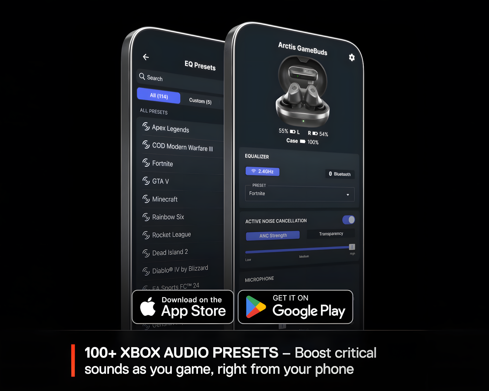 2,4 GHz-kontakt og Bluetooth-tilkobling gjør det enkelt å bytte mellom spill og mobile lydkilder. Med denne teknologien kan du nyte en sømløs lydopplevelse, enten du spiller et intenst spill eller hører på musikk fra smarttelefonen.
