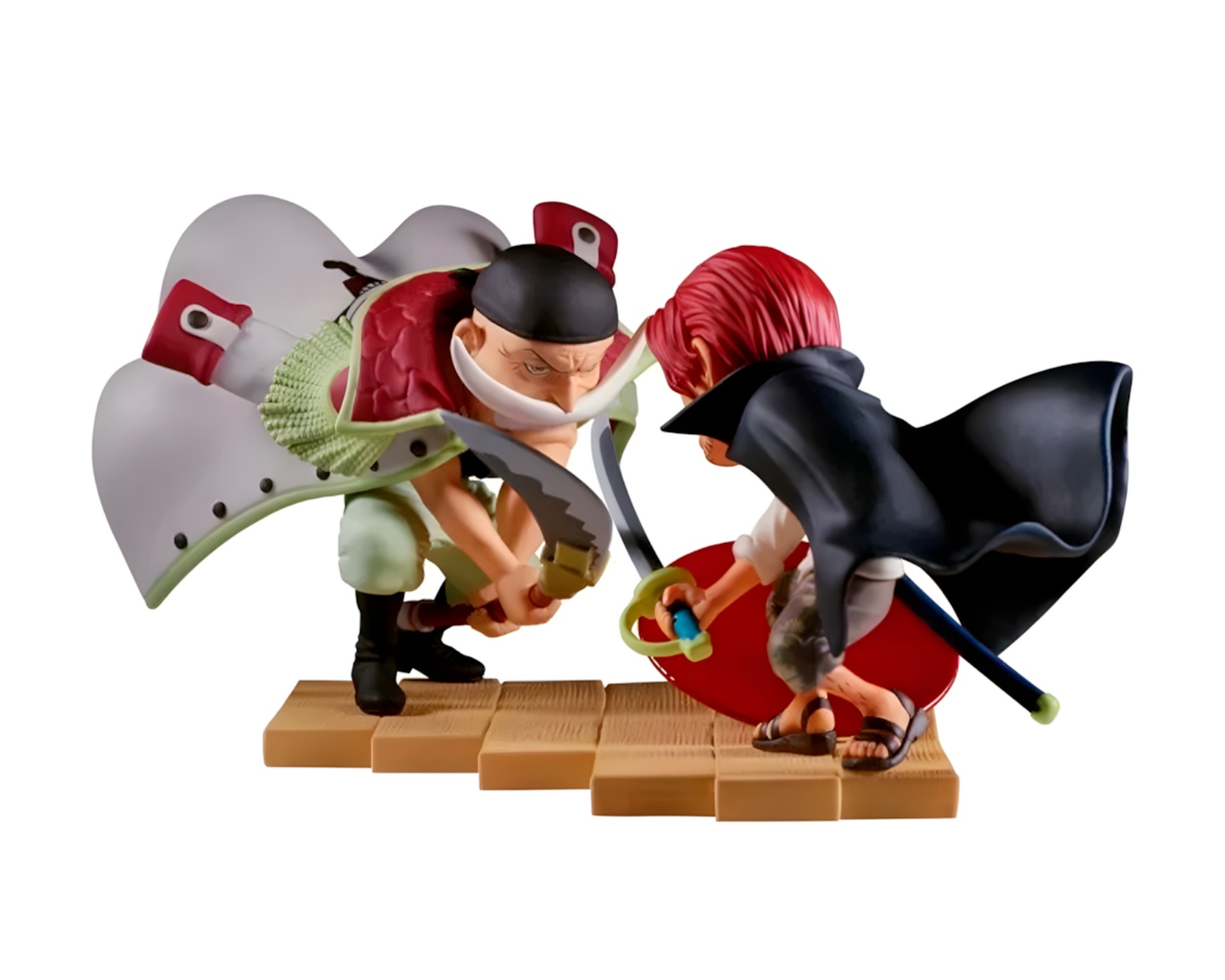 One Piece - World collectable figure log stories - Edward Newgate vs Shanks fra Bandai som fanger to ikoniske karakterer fra det populære anime-universet One Piece. Figuren representerer Edward Newgate og Shanks, kjente pirater med sterke personligheter og bakgrunner. Den nøye utformede figuren er ikke bare en dekorativ detalj, men også en hyllest til fanens kjærlighet for serien, og den gir en virkelig følelse av storytelling gjennom sine unike detaljer.Figuren er laget av høykvalitets materialer, noe som sikrer holdbarhet og levetid, mens de nøyaktige detaljene i designen gjør at karakteristiske trekk fremheves. Hver figur er en del av en begrenset kolleksjon, noe som innebærer at de er nøye skapt for å tilfredsstille entusiaster og samlere. Denne figuren er perfekt for å berike samlingen din ytterligere og kan fungere som et iøynefallende innslag i ditt hjem eller spillhjørne.