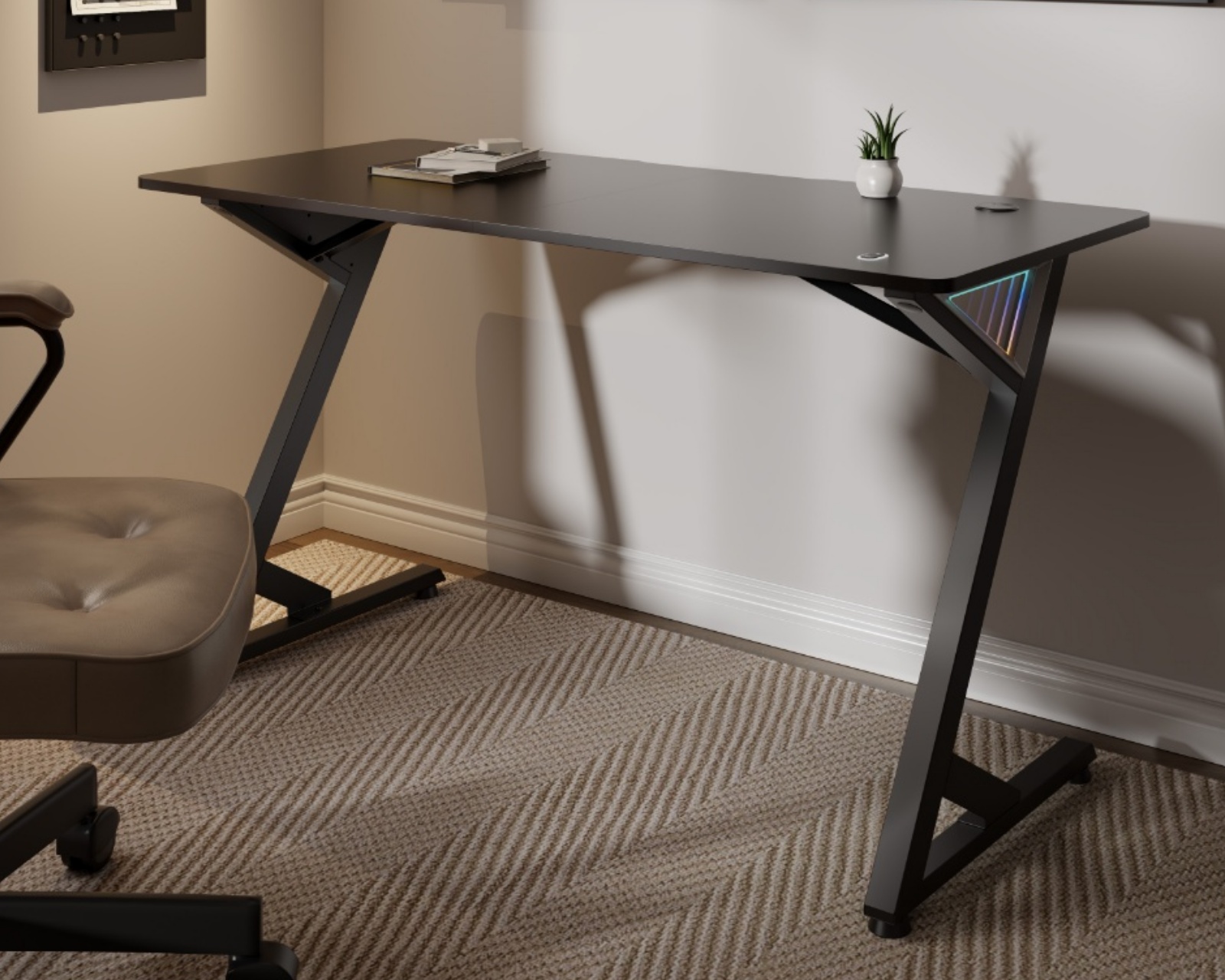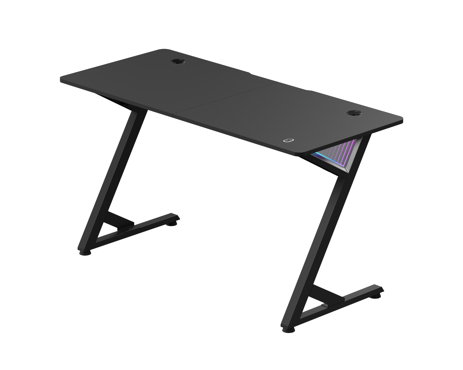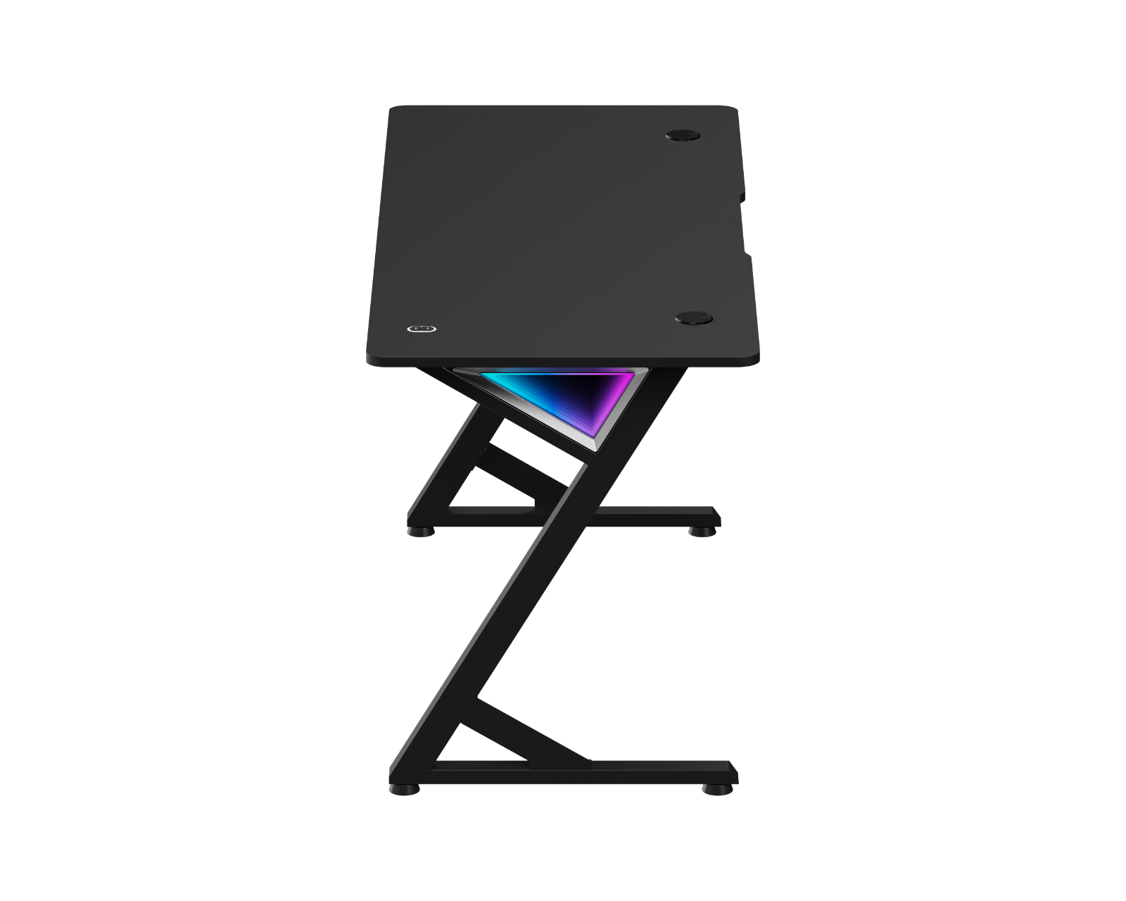InfinityGlow Gaming Skrivebordet er en stor overflate fra MaxMount. Den tilbyr en integrert belysningseffekt med et innebygd LED-system i benstrukturen, som gir spillmiljøet en dynamisk atmosfære. Skrivebordets overflate måler 1360 x 600 mm og har en stabil vektkapasitet på opptil 75 kg. Skrivebordet er designet for gamere som ønsker å skape en imponerende og funksjonell spilleflate.Skrivebordet har et futuristisk design med Z-formede ben, som skaper en tydelig estetikk og sikrer stabilitet under bruk. De innebygde kabelhåndteringshullene reduserer rot fra kabler og gir et rent utseende. Skrivebordet har også tilpassbare klistremerker for å gi et personlig preg og løfte stemningen. Den minimalistiske looken er forsterket av belysningskontrollene som er enkle å nå.