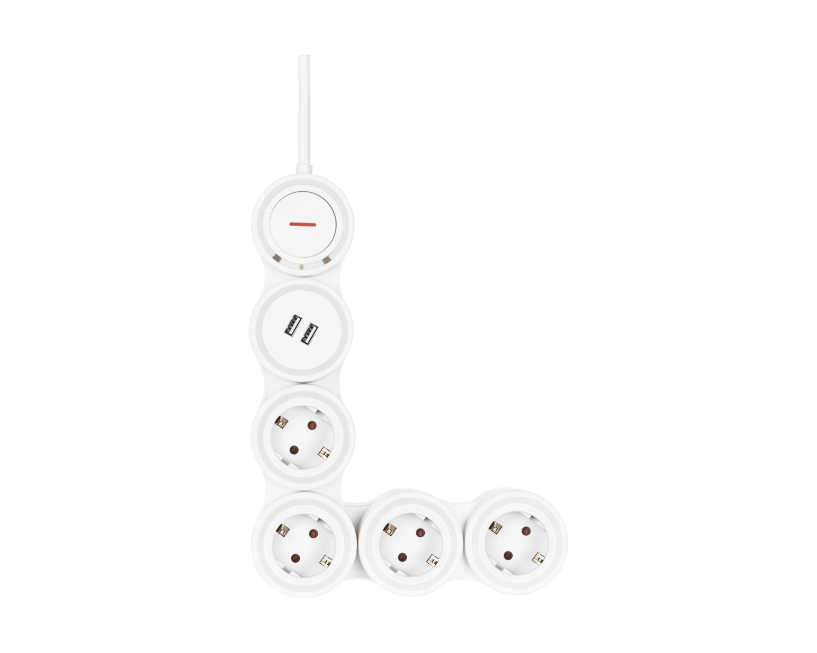 Den lange og ofte klumpete utformingen av de fleste grenuttak gjør at det blir en overvekt mellom et smalt og langt eller et kortere og bredere grenuttak. DELTACO har løsningen på begge problemene med dette fleksible grenuttaket som kan formes til fire forskjellige konfigurasjoner avhengig av din installasjon og krav. Den kan til og med bøyes rundt hjørner hvis det er din greie. De to USB-A-portene har styrken nok for strømforsyning på opptil 2,1A hver.Mål(BxDxH): 65 x 41 x 318 mm