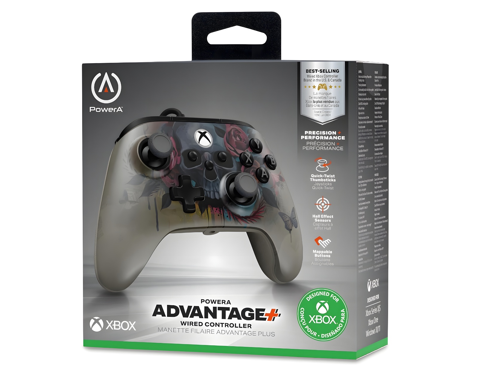 Advantage Trådbunden Kontroller er en håndkontroll fra PowerA som tilbyr tilpassbare funksjoner for Xbox Series X|S, One og Windows 10/11. Den har mulighet til å justere høyden på thumbsticks under spillets gang med tre innstillinger: Standard, Medium og Tall. Designet for gamere, har denne kontrolleren også avanserte knapper som kan programmeres i sanntid uten behov for systeminnstillinger.Kontrollens thumbsticks bruker Hall Effect-moduler som gir en kontaktfri og magnetisk sensor for økt presisjon og holdbarhet. Den er utstyrt med doble vibrasjonsmotorer som gir taktil respons, noe som forsterker spillopplevelsen. Impulstriggeren har integrerte motorer som gir reaktiv risting slik at gameren kan føle spillets intensitet. En ekstra lang USB-C-kabel på 3 meter gir mer fleksibilitet og komfort under spilling. Kontrollen har et ergonomisk design med lett vekt og teksturert grep for lange spilløkter.