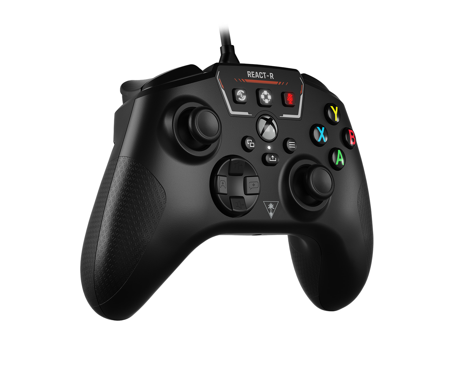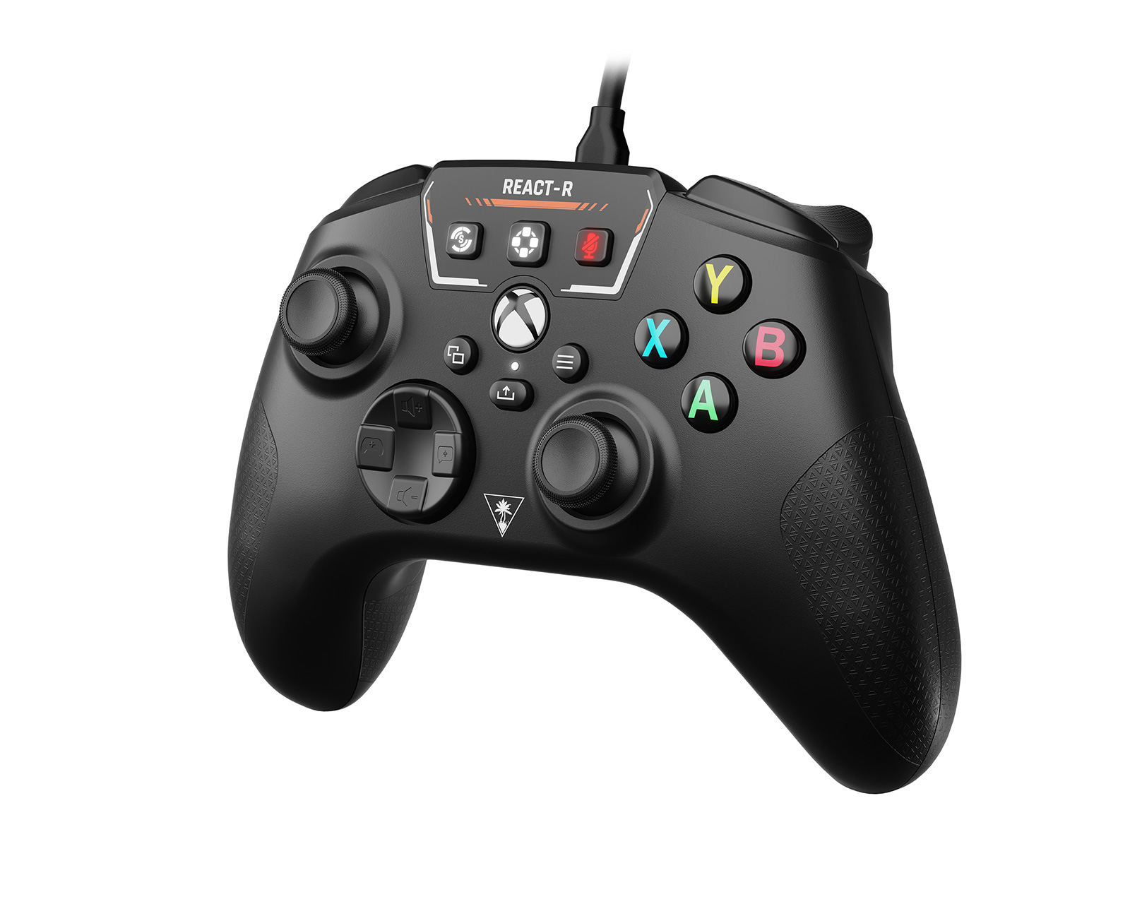 Turtle Beach REACT-R er en kablet kontroller for Xbox Series X, Xbox Series S, Xbox One og PC. Den tilbyr en ergonomisk design med teksturerte håndtak og triggere, noe som gir en komfortabel spillopplevelse under lange spillsesjoner. Med en vekt på 271 g (uten kabel) og en inkludert 2,5 m USB-C-kabel gir den spilleren frihet til å sitte lenger unna skjermen.Kontrolleren har avanserte lydfunksjoner, inkludert rask tilgang for Superhuman Hearing, som forsterker lyden av stille skritt og våpenladinger for en taktisk fordel. Med to programmerbare hurtigknapper kan brukeren tilpasse kontrollene for raskere reaksjoner. Vibrasjonene i håndtakene gir en mer oppslukende spillopplevelse. En 3,5 mm lydport muliggjør enkel tilkobling av kompatible hodesett, noe som forbedrer lydkvaliteten under spilling. REACT-R er offisielt lisensiert av Microsoft, noe som sikrer kompatibilitet og pålitelighet.