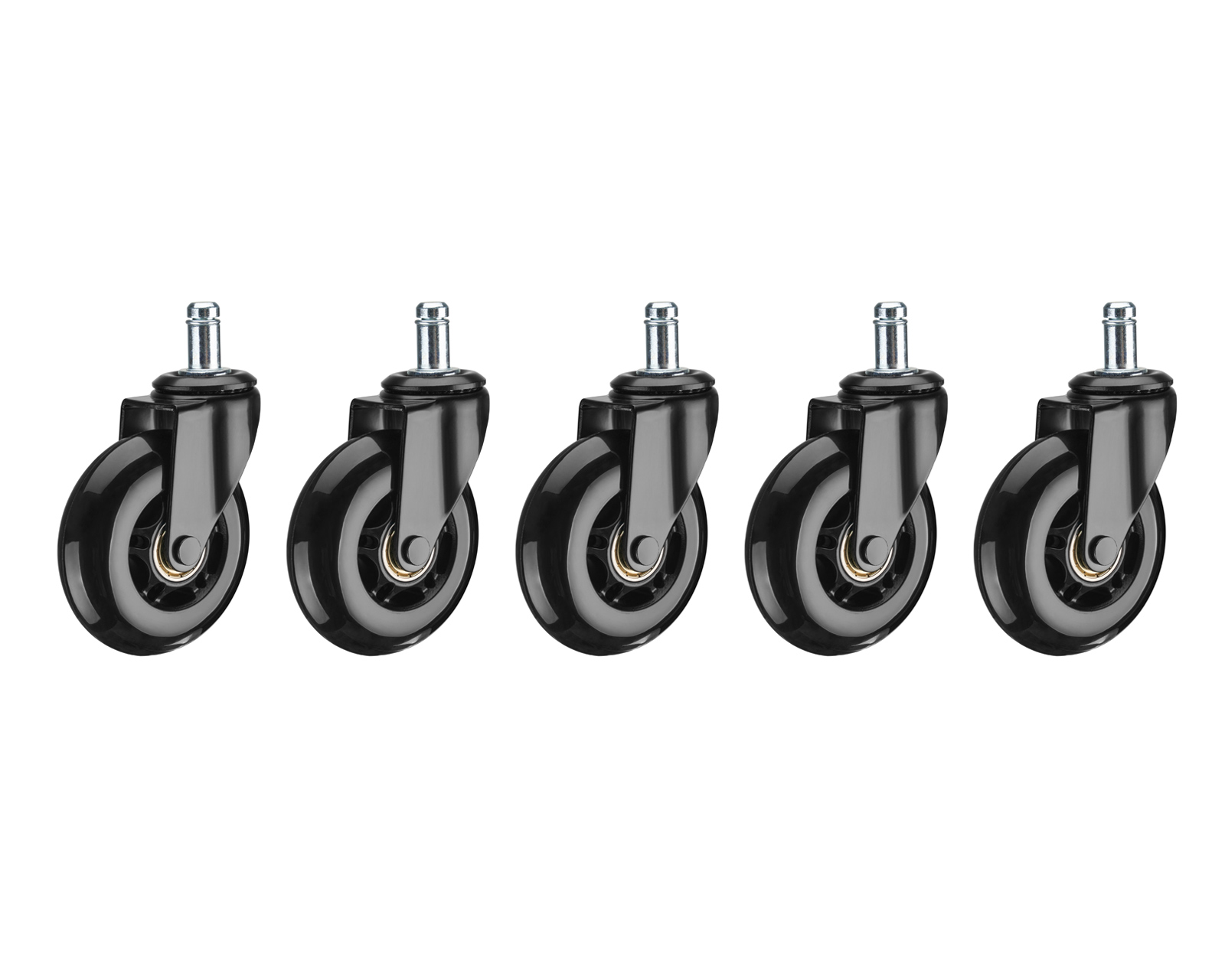 MaxMount-stolhjul er utviklet for å erstatte standardhjul på kontor- og spillstoler. Disse hjulene gir jevn rulling og er enkle å installere på de fleste stoler takket være den universelle monteringsbolten. Stolhjulene har en diameter på 76 mm og er laget av slitesterk PU-gummi, noe som gjør dem egnet for bruk på både tregulv og tepper.Stolhjulene er basert på en robust konstruksjon med sentrerte stålkomponenter for maksimal holdbarhet. Den spesielle gummiblandingen sikrer stille og effektiv rulling uten å skade gulvflater. Det universelle designkonseptet gjør dem kompatible med mange typer stoler, noe som forenkler hjulskift. Den optimale diameteren bidrar til stabilitet og godt grep på forskjellige overflater. Med en 11 mm monteringspinne er disse hjulene en praktisk løsning for de som ønsker høy funksjonalitet på kontoret eller i lekerommet.