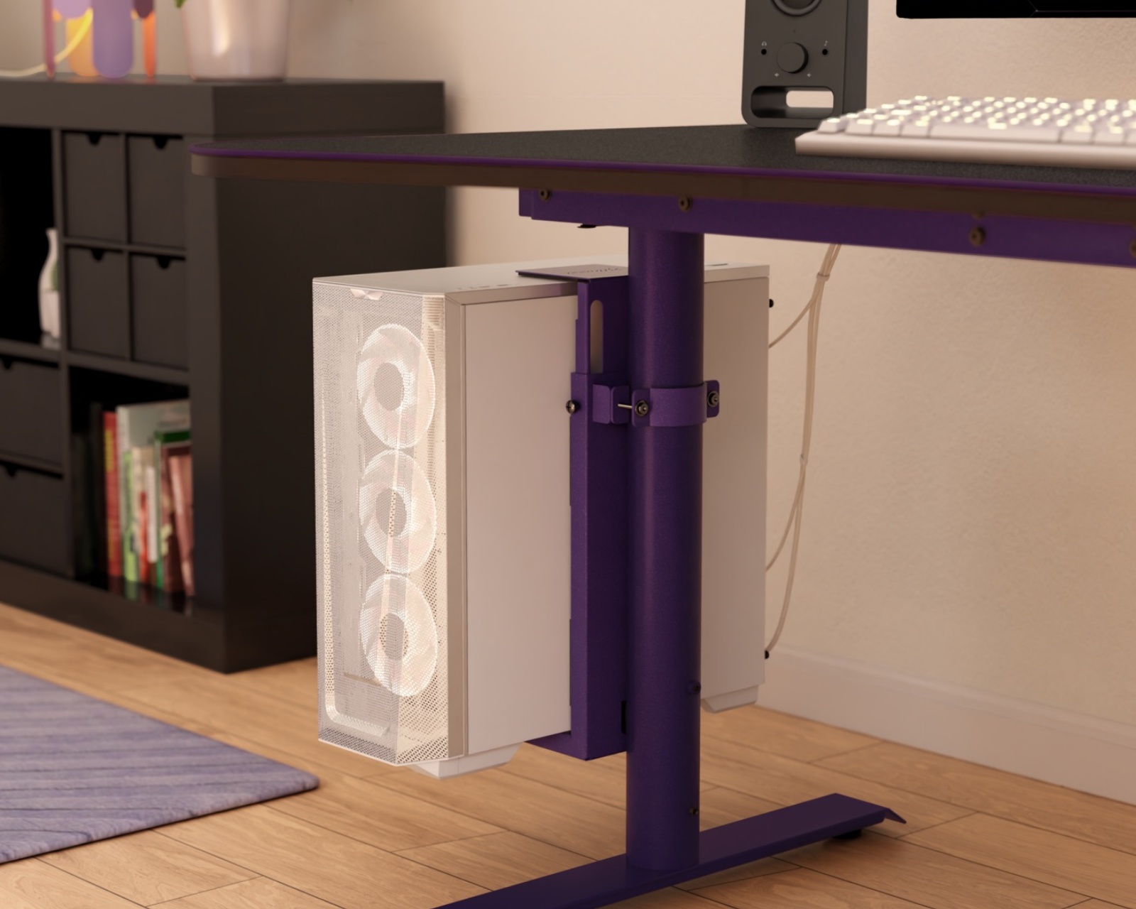 PC-feste er et produkt fra Arozzi som er designet for å montere en datamaskin på en sikker måte. Dens design frigjør gulv- og skrivebordsplass, noe som gjør det til en ideell funksjon for høyderegulerbare og senkbare skrivebord som Arena Moto. Med en justerbar størrelse, sterk stålkonstruksjon og beskyttende polstring tilbyr dette festet en funksjonell og beskyttende løsning for å holde oppsettet ditt organisert og rent. Høyeste høyde er 55,5 cm og minimumshøyde er 34,5 cm, noe som gjør det fleksibelt nok til å passe forskjellige datamaskinstørrelser. Dette PC-festet er laget av robust stål som sikrer langvarig holdbarhet og stabilitet. Den beskyttende polstringen er designet for å forhindre riper og skader på datamaskinen din under bruk. En av dens nøkkelfunksjoner er 360° monteringsfleksibilitet som gjør at brukeren kan plassere enheten akkurat der den passer best i arbeidsrommet. Med en maksimal vektkapasitet på 30 kg kan det håndtere tyngre bygninger uten å gå på kompromiss med sikkerheten.Oppsummering
