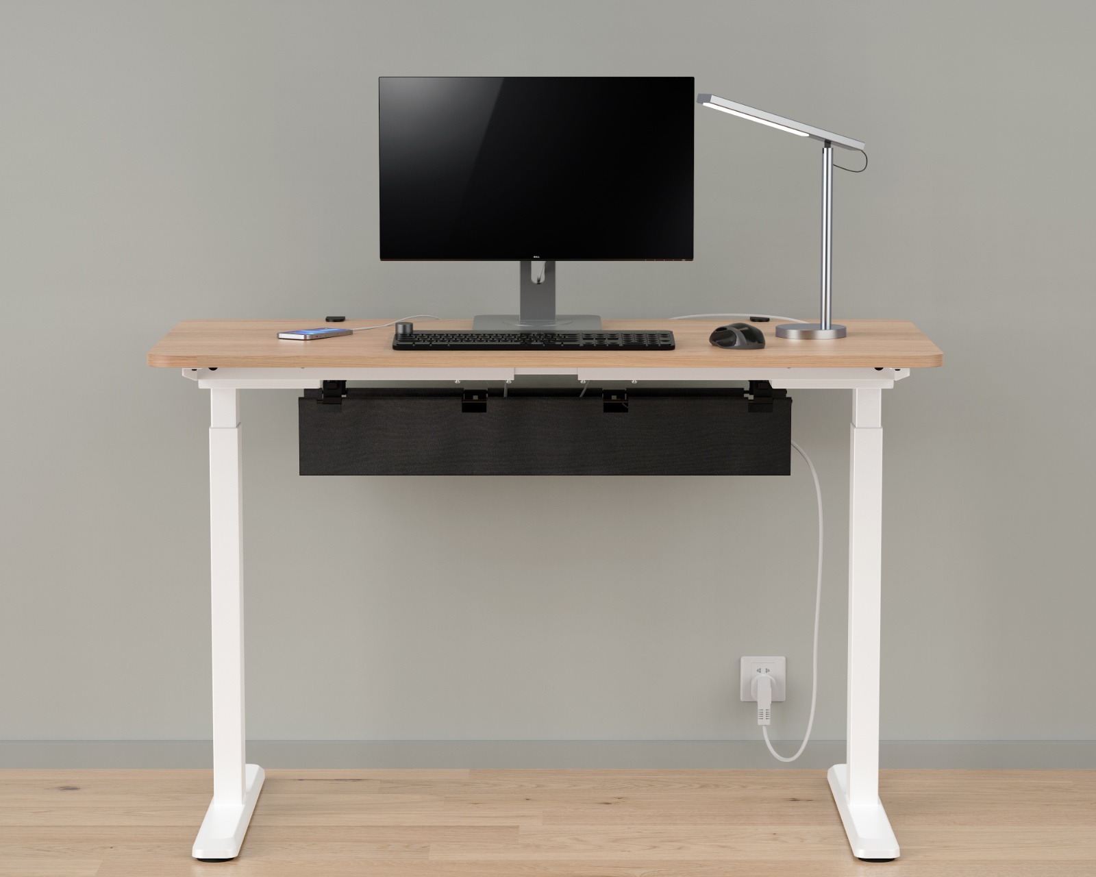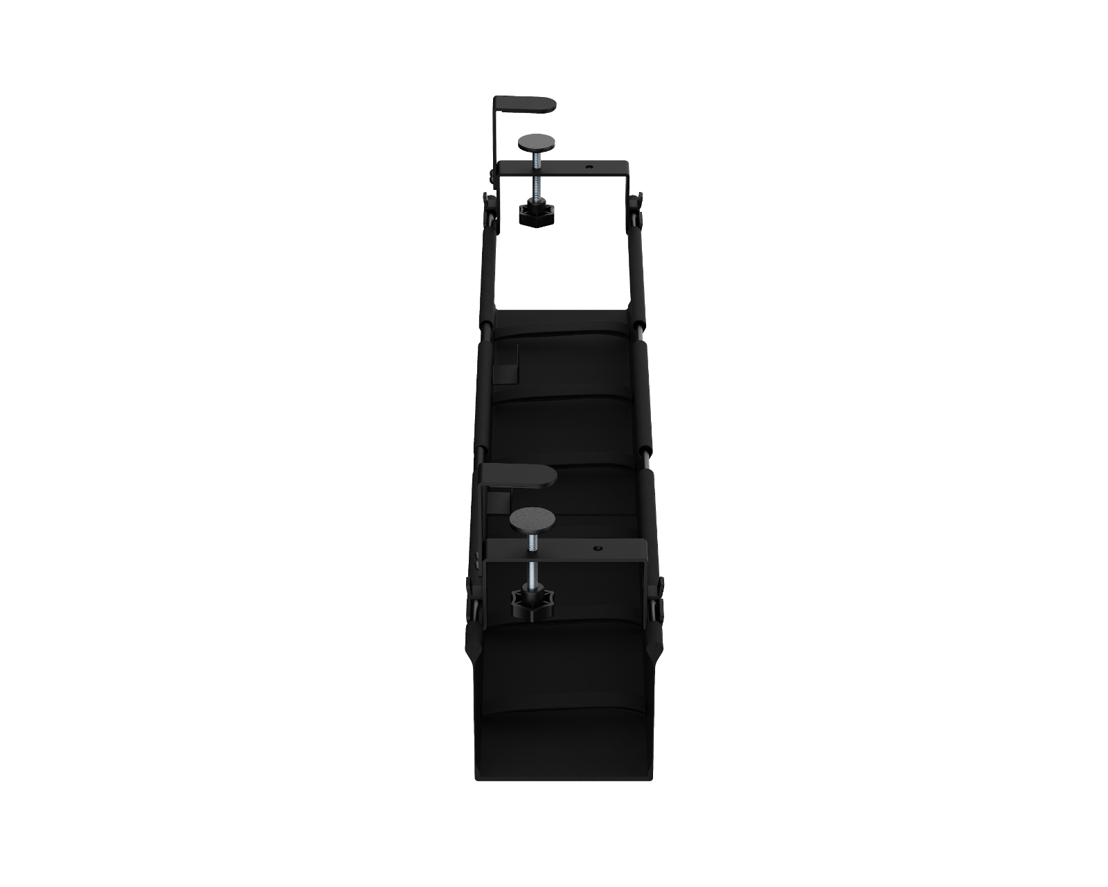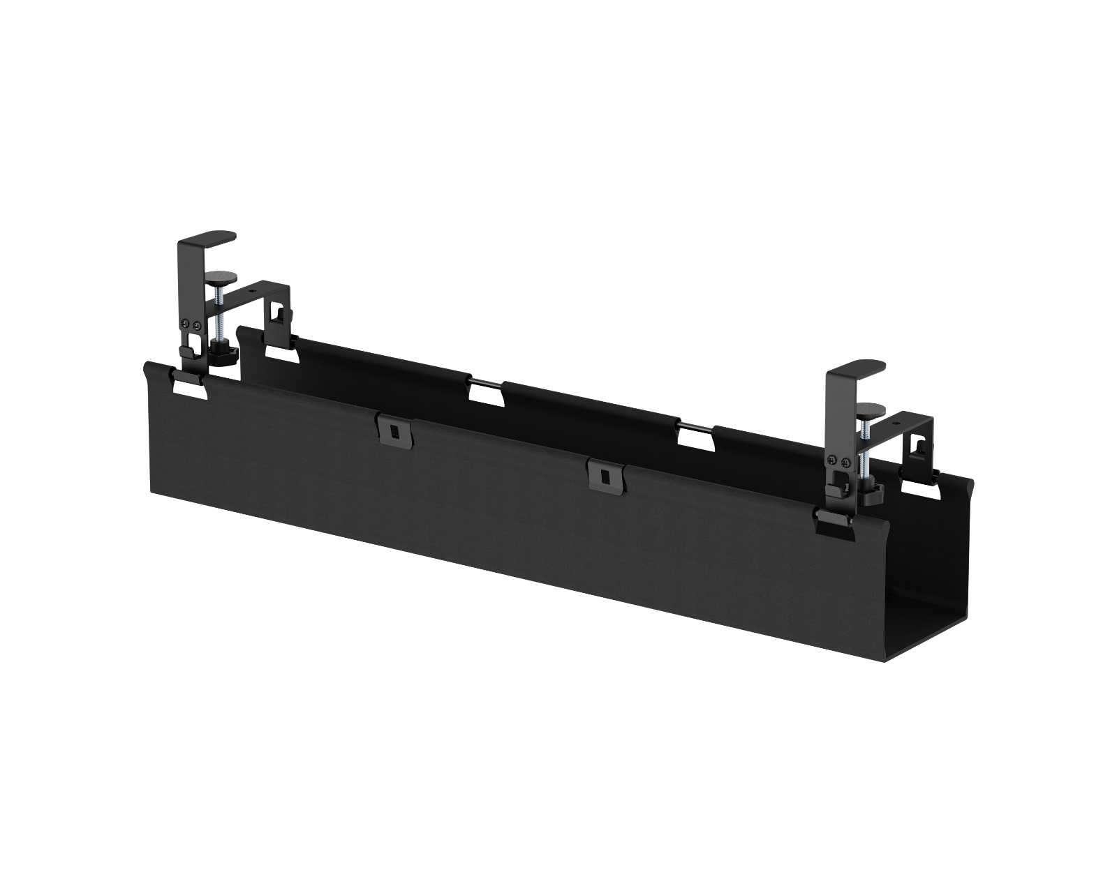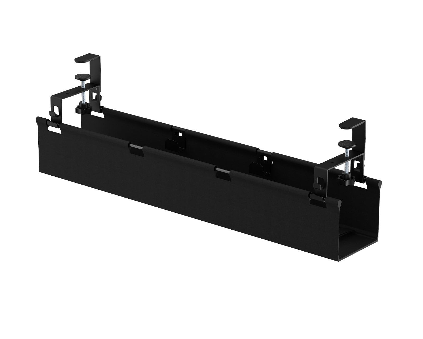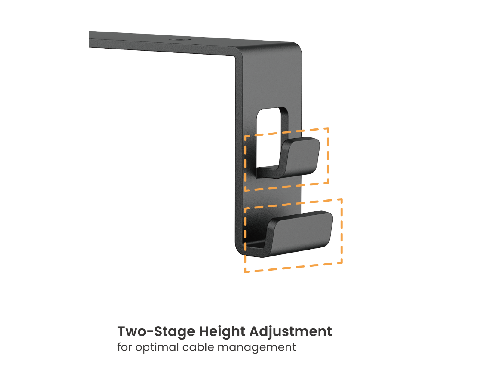 Kabelkanal med bordfeste fra MaxMount skjuler kabler og ledninger effektivt under skrivebordet. Kabelkanalen installeres enkelt med bordfestet og tilbyr en justerbar høyde med to nivåer, noe som gir fleksibilitet for ulike kabler og enheter. Kabelkanalen er konstruert av en kombinasjon av stål, plast og oxford-tekstil med en pulverlakkert overflate, som gir både holdbarhet og et profesjonelt utseende.Kabelkanalen har innebygde fester for sikker kabelhåndtering og leveres med to kabelkroker samt en justerbar kabelbinding på 2 meter for optimert kabling. Med en vektkapasitet på opptil 5 kg sikres dens funksjonalitet og anvendbarhet på ulike arbeidsstasjoner.