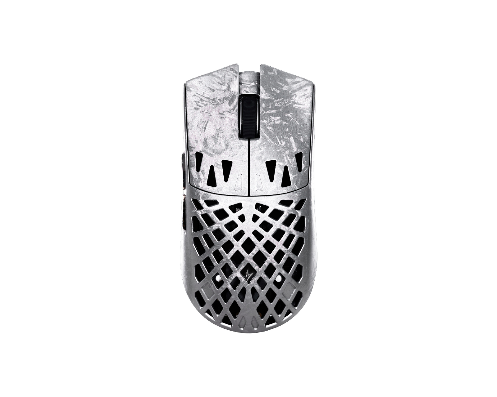 GHOST Ultimate Trådløs Gamingmus er en gamingmus fra ATK som tilbyr en høyytelses trådløs løsning. Den er basert på en hollows konstruksjon med karbonfiberkomposittmateriale, noe som gir en overlegen byggkvalitet og følelse. Designet for middels til små hender og optimalisert for alle grepestiler gir GHOST en komfortabel og intuitiv opplevelse for gamere.Musen veier kun 48±3g og har nøyaktige mål på 121mm x 61.3mm x 38mm, noe som bidrar til dens letthet og håndterbarhet. Den bruker PAW3950 Ultra-sensoren og måler polling rate i intervallet 125-8000Hz, noe som gjør den ekstremt responsiv. Utstyrt med en ny nano-belægning tilbyr den både grep og holdbarhet.
