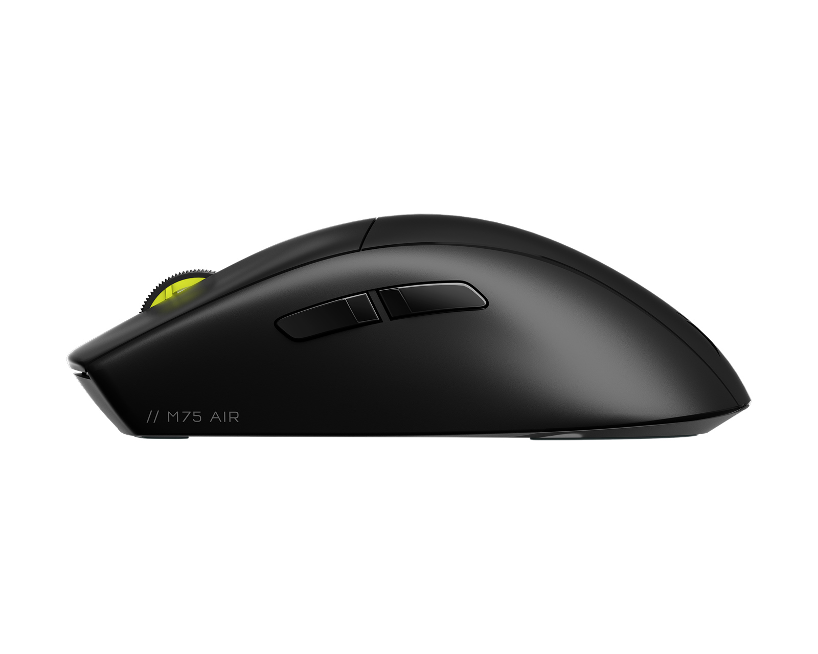 Med Corsairs Quickstrike er det null forsinkelse mellom venstre og høyre knapp. Venstre og høyre knapper på M75 AIR er optiske brytere som lar deg angripe motstanderne dine med forbløffende hastighet. Med 2,4 GHz har du opptil 34 timers batterilevetid hvis bakgrunnsbelysningen er av og med Bluetooth-tilkobling har du opptil 100 timer