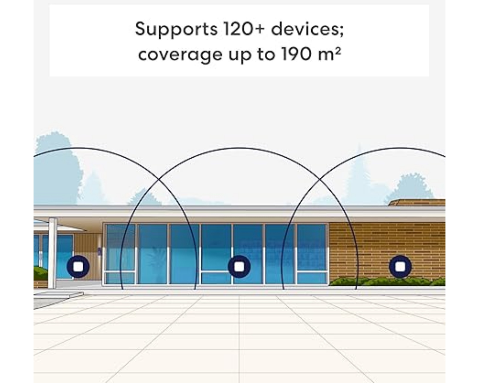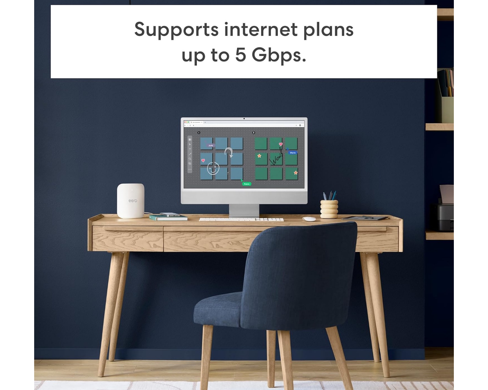 En tri-band Wi-Fi 7 mesh-ruter fra Eero som tilbyr kraftig dekning og høy hastighet for dagens tilkoblede hjem og kontorer. Med en kapasitet for trådløse hastigheter på opptil 3.9 Gbps og to auto-sensing 5 GbE porter for kablede tilkoblinger tilbyr Eero Pro 7 eksepsjonell ytelse. Ruteren er fremtidssikker og bakoverkompatibel med tidligere generasjoner av Eero, designet for å håndtere over 200 enheter i hjemmet.Eero Pro 7 er konstruert med hjelp av TrueMesh-teknologi som garanterer optimal tilkobling gjennom automatisk kanalvalg og båndstyring. Dette gjør at ruteren reagerer smart på nettverksforhold og reduserer latensen, noe som er viktig for spilling og streaming. Den kan dekke opptil 2,000 kvadratfot og er ideell for husholdninger med flere smarte enheter. I tillegg medfølger et omfattende sikkerhetssystem som inkluderer WPA3-kryptering og støtte for ulike nettverkstjenester for sikker bruk av nettverket.