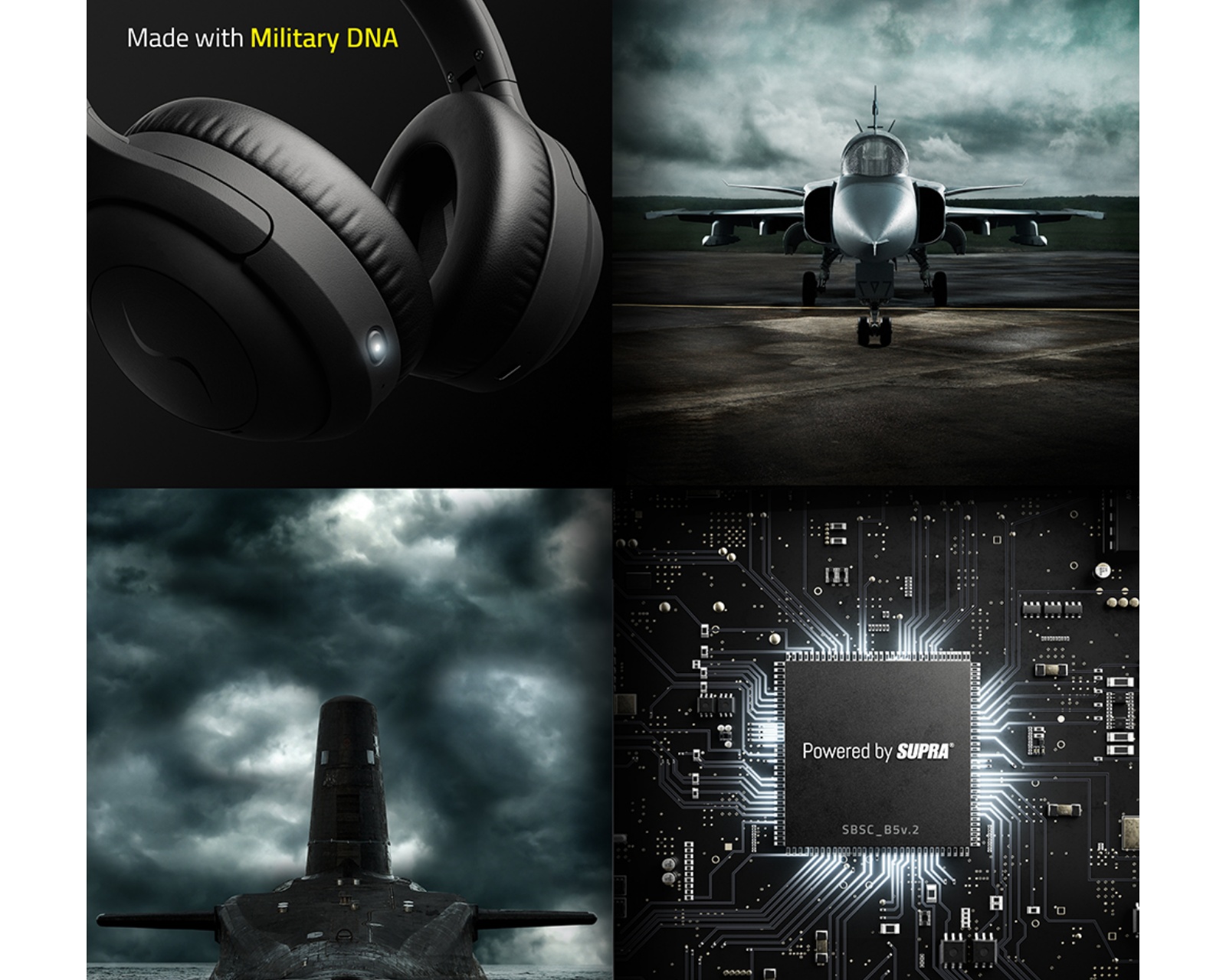 SUPRA NiTRO-X Hybrid Over-ear er et trådløst og støydempende hodetelefon fra Sound by Sweden. Den tilbyr komfort og passform i verdensklasse, takket være gyroskopfunksjon og nøye utvalgte materialer. Med en batteritid på opptil 35 timer og HyperCharge-funksjon for hurtiglading, får brukeren 6 timers spilletid på kun 15 minutters lading. Hodetelefonens design passer både for daglig bruk og kontormiljøer, med fokus på lydkvalitet og brukervennlighet.Byggekvaliteten til NiTRO-X inkluderer holdbare materialer som Kevlar® og titanaluminid, som gjør den svette- og støtbestandig. Den aktive støydempingen (ANC) sammen med den egenutviklede lydteknologien gir en høyoppløst lytteopplevelse samt klare samtaler. Hodetelefonen er utformet for å gi en kjølende effekt ved lengre bruk, med trykkavlastende hodebånd og ventilerende materiale, SUPRA BreathTex®. Ved bruk med kabel kan man utnytte HD Audio med 24 bits oppløsning.