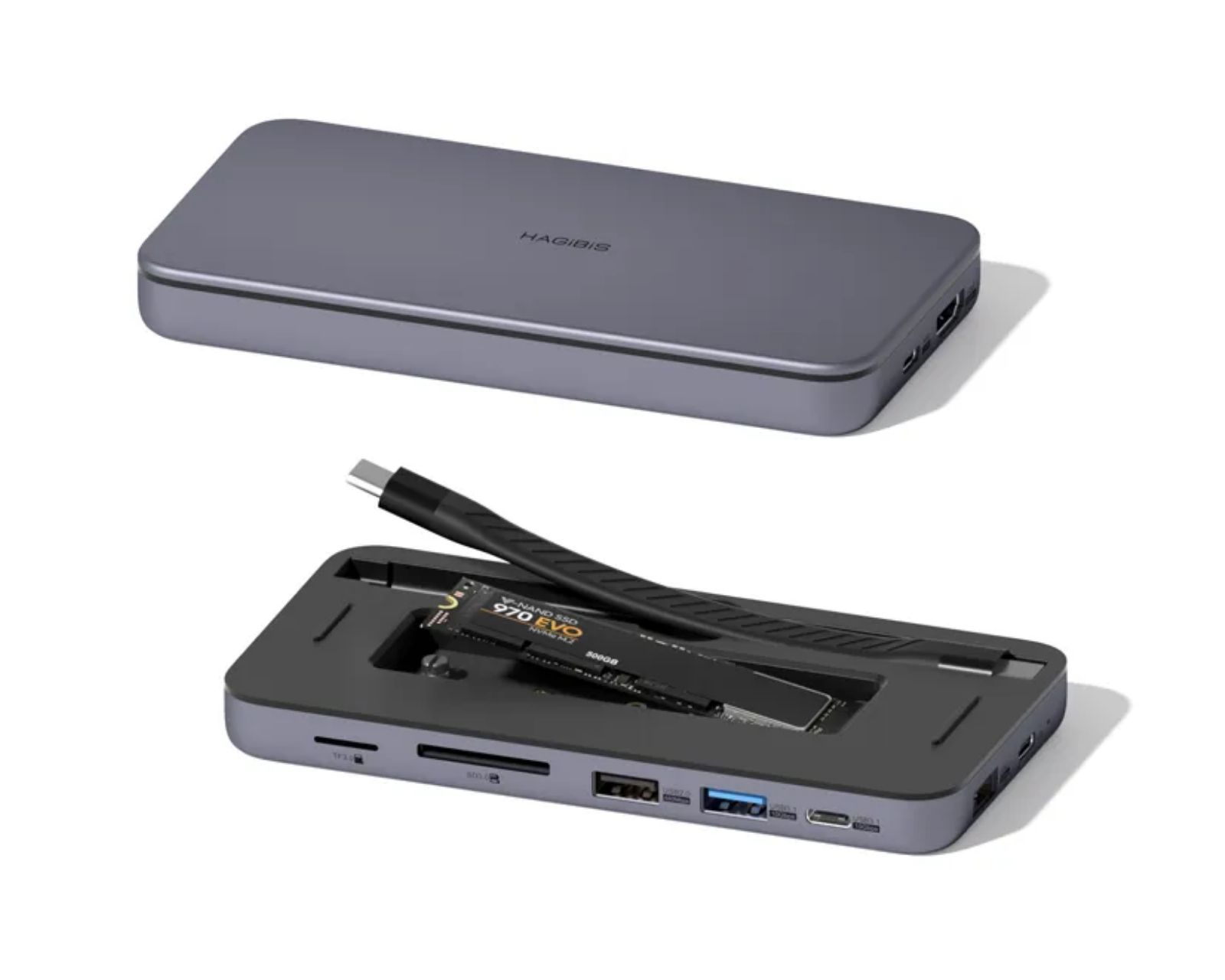 - Harddiskkapsling med USB C-hub