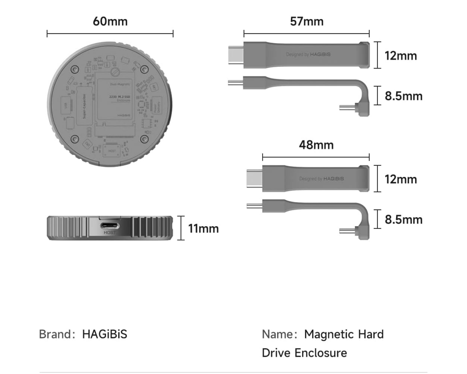 Hagibis M.2 2230 NVMe SSD-harddiskhus er en aluminiumsstruktur som tilbyr beskyttelse og funksjonalitet for NVMe SSD-enheter i formatet 2230. Det er spesifikt designet for å støtte enheter med M-Key og B+M-key, og gir en overføringshastighet på opptil 10 Gbps med USB 3.2 Gen2. Dette harddiskhuset har en integrert magnetisk struktur som gir en sikker tilkobling med MagSafe, som stabilt fester det til kompatible enheter. Det er ment for bruk med blant annet iPhone 15 Pro/Pro Max og andre enheter med USB Type-C-porter.Harddiskhuset er laget av aluminium, noe som gir god holdbarhet og varmeavledning for å optimalisere ytelsen under bruk. I tillegg tilbyr det dobbelt beskyttelse mot strømutkobling med en superkondensator og en hovedkontroller, som forlenger beskyttelsen av data under strømutkobling. Utstyrt med to USB Type-C-kabler for datatransfer, er det kompatibelt med andre enheter, inkludert MacBook og Android-telefoner. Den støtter opptil 2 TB kapasitet og tilbyr plug-and-play-bruk uten komplisert installasjon.
