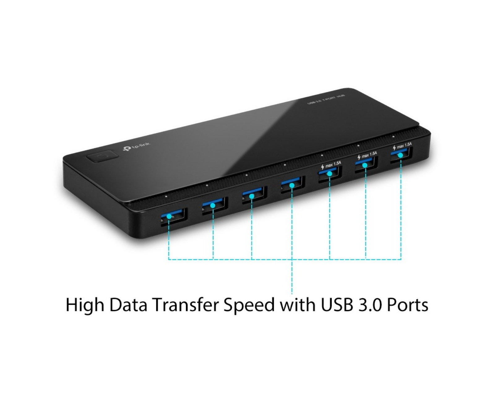 UH700 er en USB 3.0 7-Port Hub fra TP-Link som tilbyr en effektiv løsning for å utvide antallet USB-porter på datamaskinen din. Den er laget for å gi brukeren en smidig overføring av data, og har syv porter som muliggjør opptil 5Gbps overføringshastighet, noe som er ti ganger raskere enn tradisjonelle USB 2.0-tilkoblinger. Denne huben er kompatibel med flere operativsystemer inkludert Windows og Mac og krever ingen drivere.UH700 er designet med fokus på rask lading og sikker dataoverføring. Den leverer en strøm på opptil 5V/1.5A, noe som betyr at du kan lade en enhet som Galaxy S6 edge på bare 100 minutter, en betydelig tidsbesparelse sammenlignet med vanlige USB-hubber. Den er også utstyrt med et sofistikert kretsdesign som beskytter mot overoppheting, kortslutning og overspenning. I tillegg har den syv individuelle LED-indikatorer for enkelt å se tilkoblingsstatus for hver port.