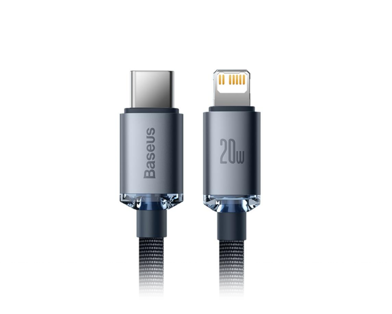 Crystal Shine kabel USB-C til Lightning fra Baseus tilbyr funksjonalitet og holdbarhet i en stilren pakke. Denne kabelen er designet for hurtiglading med en effekt på 20W og muliggjør samtidig dataoverføring med en hastighet på 480 Mbps. Den er også konstruert for å motstå overoppheting takket være intelligent temperaturkontroll, noe som gjør den både sikker og effektiv.Kabelen er bygget med hjelp av galvaniserte forsterkninger og en ny kjerne-teknologi som reduserer den elektriske motstanden, noe som gir raskere lading. I tillegg er den laget av et slitesterkt stoff som forhindrer sammenvikling og er holdbar gjennom forbedret SR-beskyttelsesteknologi, noe som gjør at den tåler over 10 000 tilkoblinger. Det elegante aluminiummaterialet og den blanke finishen gir et moderne utseende som gjør kabelen mer enn bare et tilbehør.