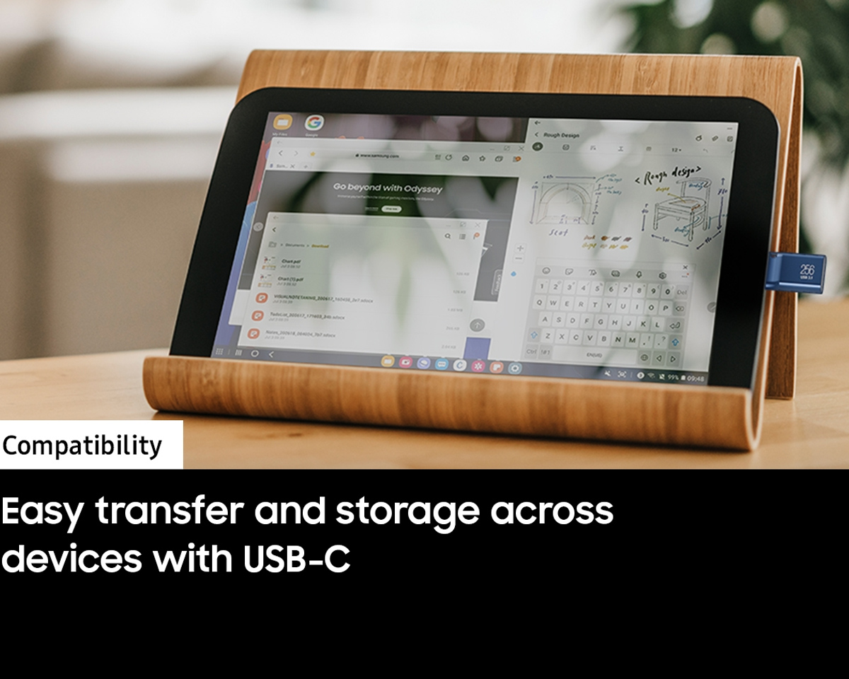 Utvid lagringsplassen med Samsung USB Type-C Flash Drive. Denne ultralette og kraftige enheten er perfekt for sikkerhetskopiering, deling og transport av filene dine. Med lesehastigheter på opptil 400 MB/s og overføringshastigheter på 4 GB på 11 sekunder, tilbyr Samsung USB Type-C Flash Drive utrolig høy ytelse som du kan stole på for raskt å øke lagringsplassen på enheten din. Den passer lett i lommen og er derfor like praktisk som den er pålitelig.I tillegg trenger du ikke å bekymre deg for skader takket være den vann-, støt- og temperaturbestandige kroppen, noe som betyr at du ikke trenger å bekymre deg for å holde denne enheten trygg og sikker - uansett hvilke utfordringer den står overfor når du tar med deg data overalt . Kompatibel med både USB-C 3.0- og 2.0-systemer, du kan bruke denne flash-stasjonen med et bredt spekter av enheter fra forskjellige merker og modeller. Gjør deg klar for en utrolig effektiv måte å lagre de viktige dokumentene på med den avanserte Samsung USB Type-C Flash Drive.