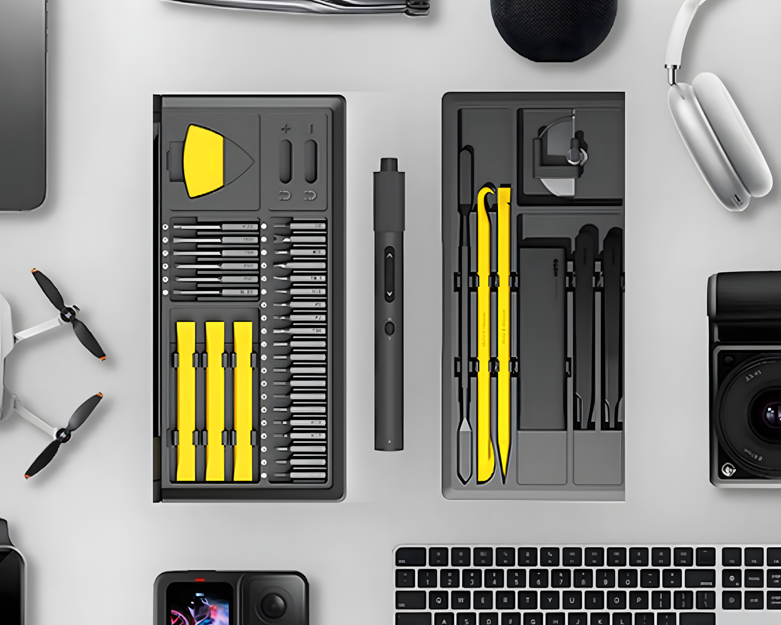 Precision Skruvmejselkit Pro er en elektrisk skrutrekker fra HOTO som kombinerer presisjon og praktisk funksjonalitet. Den er utstyrt med en dual moment-funksjon som gjør det enkelt å veksle mellom sensitive og krevende oppgaver. Med en knapplås for enkel aktivering og LED-belysning for å lyse opp arbeidsområdet, tilbyr dette settet brukervennlighet og effektivitet. Den har også hurtig magnetisk bitbytte for smidig håndtering.Sett består av 48 høykvalitets tilbehør som muliggjør et bredt spekter av bruksområder, fra små elektroniske apparater til hjemme-reparasjoner. Hele settet oppbevares i en klamshell-arbeidsstasjon som holder alt organisert og lett tilgjengelig. Byggkvaliteten er høy med sterke materialvalg som sikrer holdbarhet. Den elektriske skrutrekkeren viser på pålitelig ytelse, noe som gjør den passende for både profesjonelle og gjør-det-selv-entusiaster som verdsetter effektivitet og nøyaktighet.