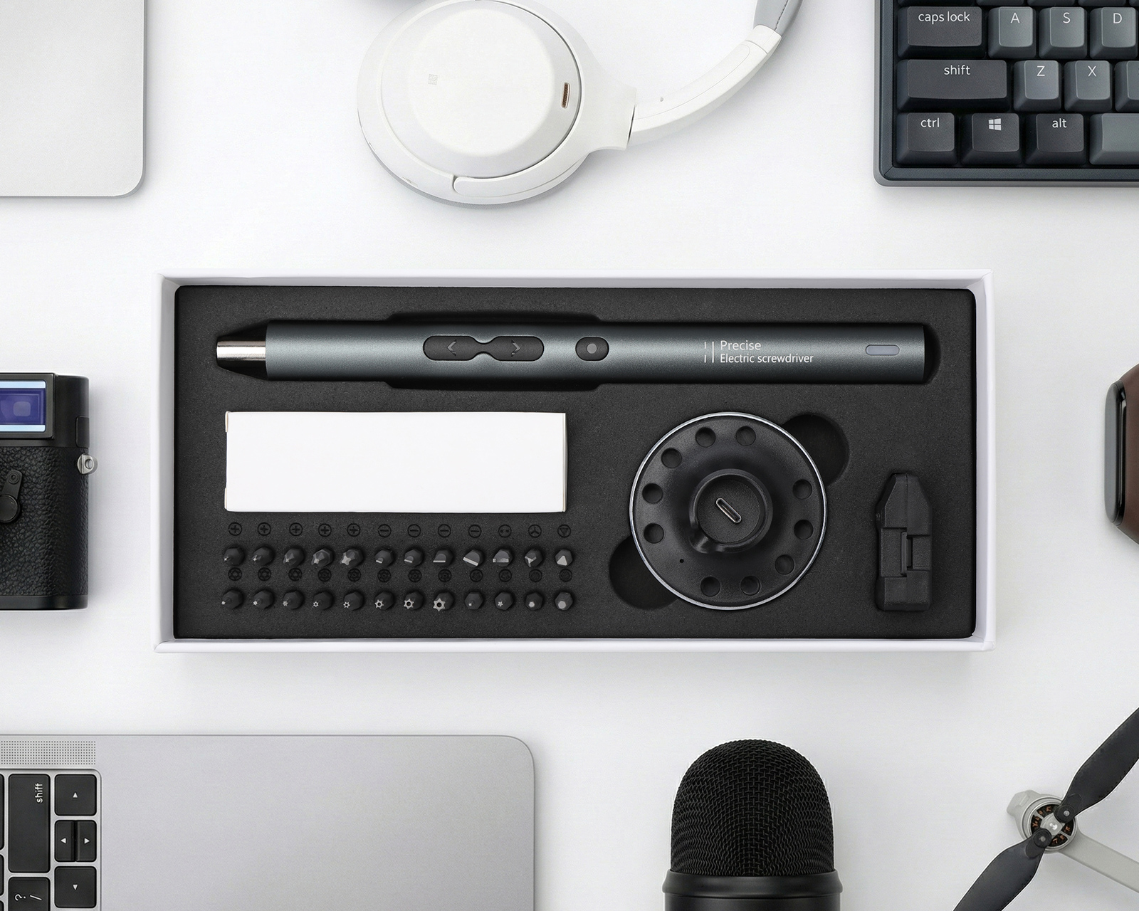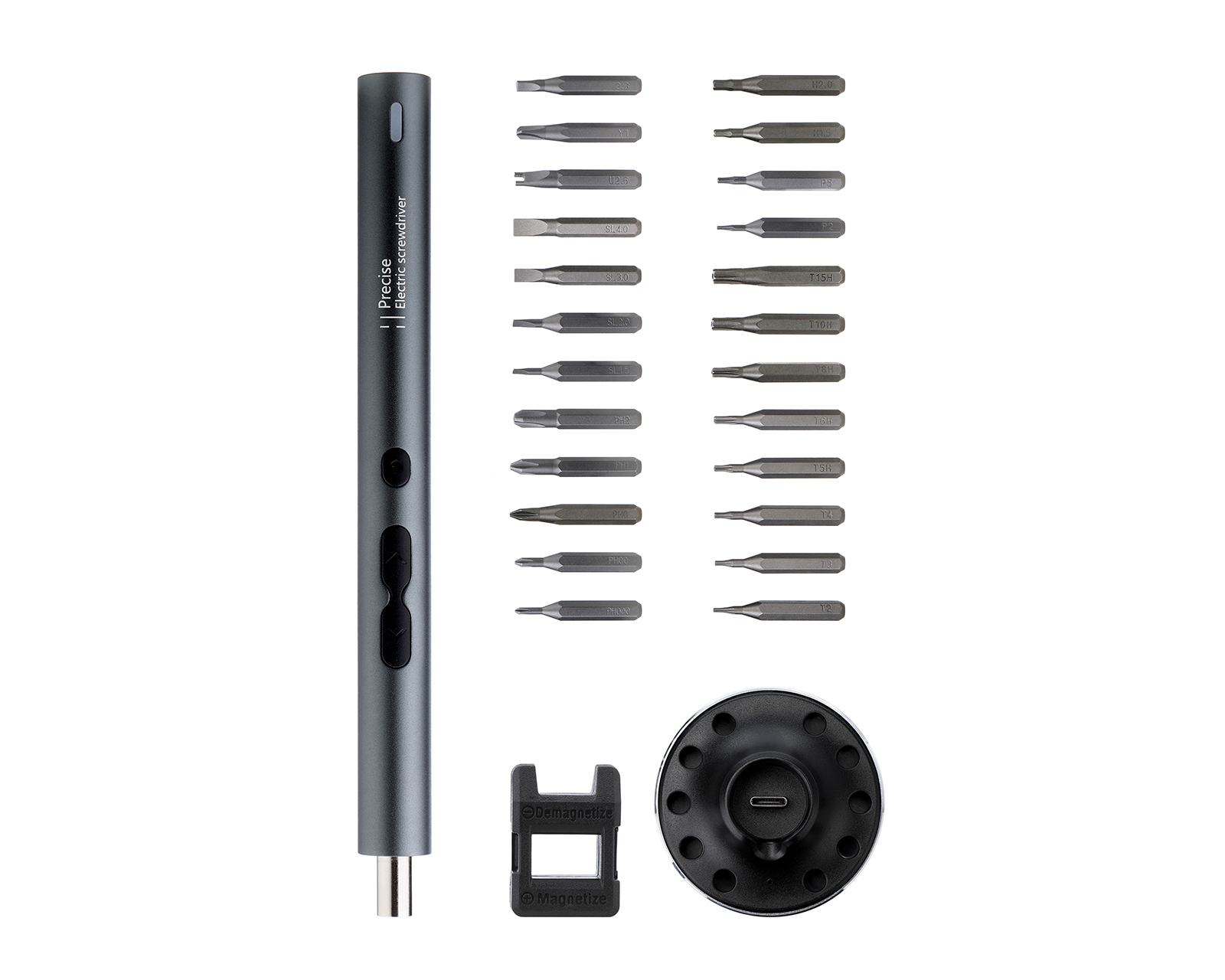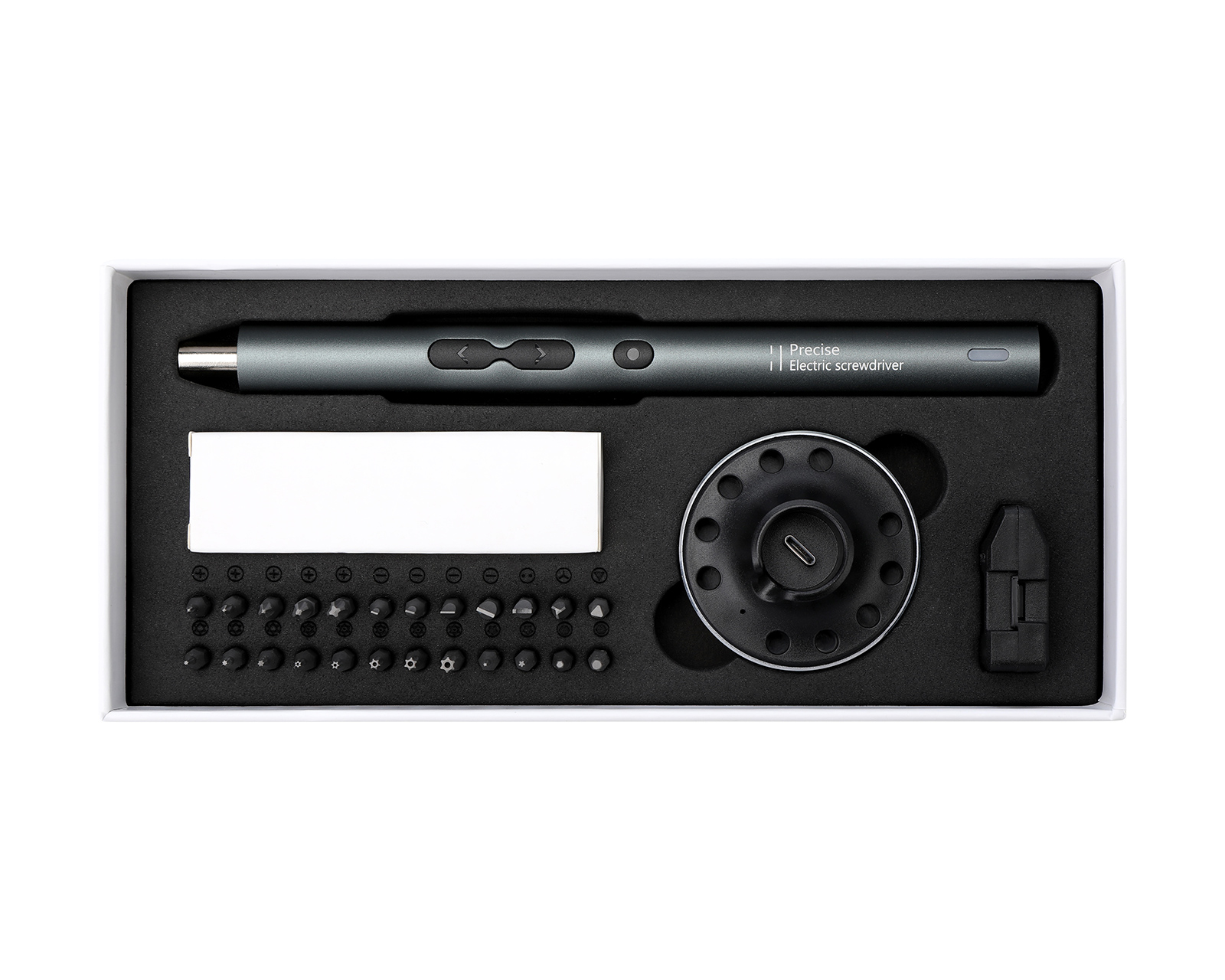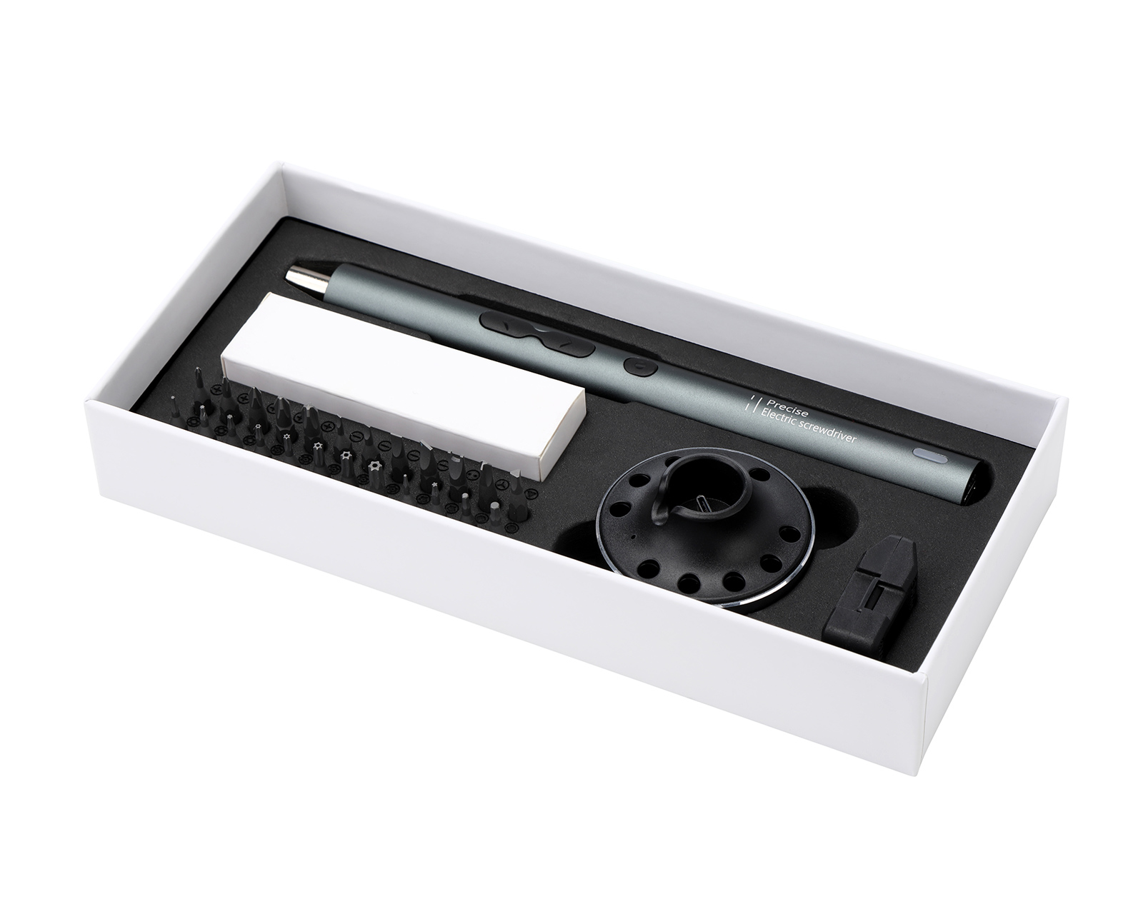 Elektrisk presisjonsskruvtrekker fra MaxMount, designet for å møte behovene til teknisk interesserte brukere. Denne kompakte skruvtrekkeren tilbyr 24 premium S2 stålskruvbits og en praktisk ladestasjon for smidig bruk. Utformet for å gi optimal presisjon og holdbarhet, med et ergonomisk kropp som gjør skruvingen enkel og komfortabel.Skruvtrekkeren har et kraftig 350mAh litiumbatteri som tilbyr en full ladning på 50 minutter og kan skru opp til 300 skruer per ladning. Den 360-graders blændfri belysningen med tre innebygde LED-lamper lyser effektivt opp arbeidsområdet. I tillegg gjør den trådløse og oppladbare designen bruken fleksibel og komfortabel. En smart motor med intelligente beskyttelsesfunksjoner garanterer lang levetid og effektiv drift. Med en maksimal hastighet på 200 rpm og et maksimalt elektrisk dreiemoment på 0,35N.m, er denne skruvtrekkeren perfekt for en mengde forskjellige applikasjoner i hjemmet eller på kontoret.