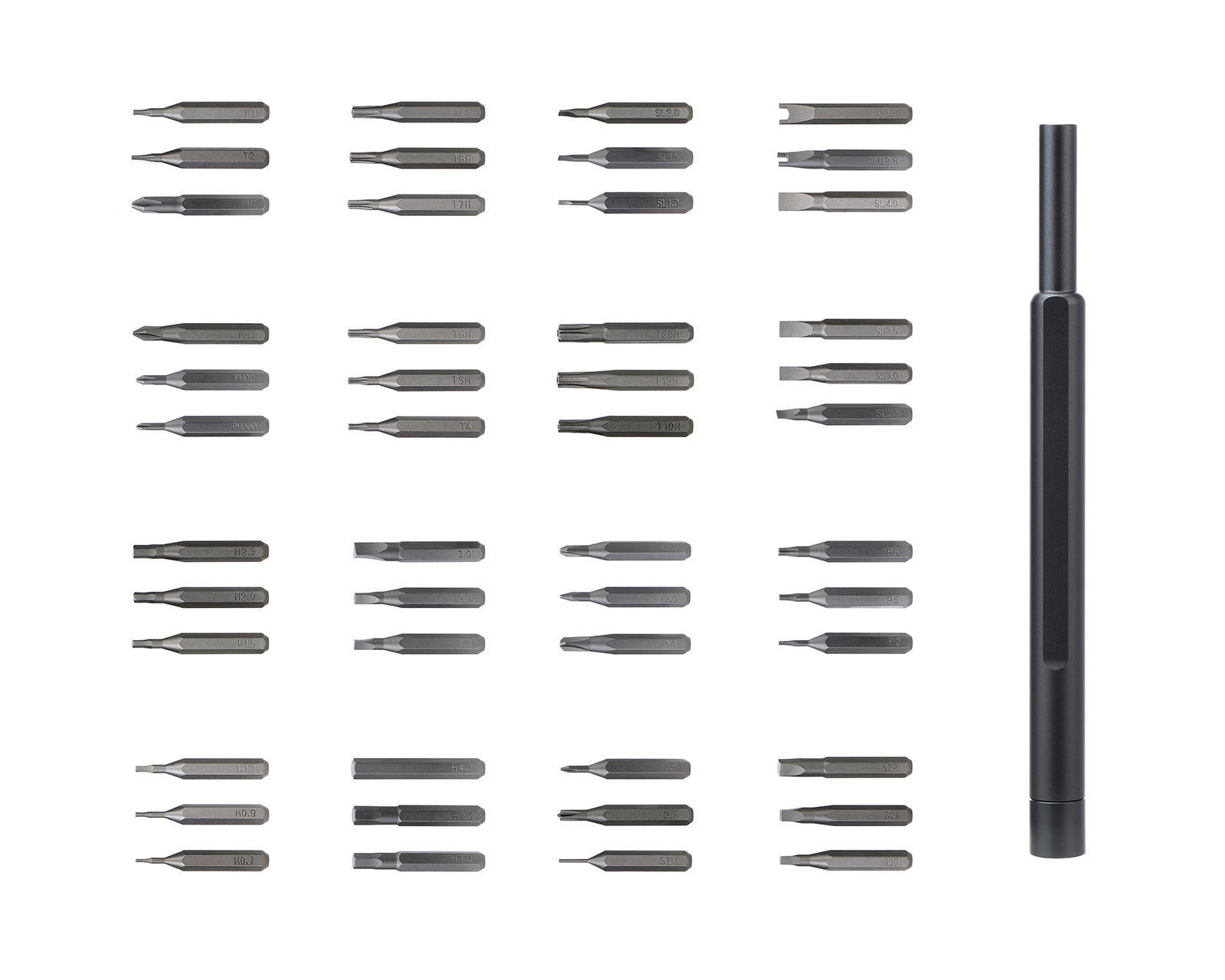 Skrujernsett fra MaxMount, designet for å enkelt håndtere reparasjoner av en rekke forskjellige enheter som smarttelefoner, bærbare datamaskiner, spillkonsoller og mye mer. Settet inneholder hele 48 forskjellige magnetiske bits, inkludert Philips, Torx og hex, som gir brukeren et bredt utvalg for både enklere og mer komplekse reparasjoner. Med et aluminiums håndtak av høy kvalitet er dette verktøyet både lovende i holdbarhet og ergonomisk utforming.Dette presisjons skrujernsettet er bygget med S2 verktøystål som gir en hardhet på opptil 60 HRC, noe som resulterer i eksepsjonell holdbarhet og motstandsdyktighet mot rust. Håndtaket har en anodisert overflate og et spesielt halkfritt grep, noe som gjør det behagelig å bruke over lengre tid. Den magnetiske designen letter bytte av bit og gjør det enkelt å holde orden med de forskjellige bitene, noe som sikrer en smidig brukeropplevelse. Den kompakte størrelsen gjør det i tillegg lett å ta med seg, uansett hvor du befinner deg.