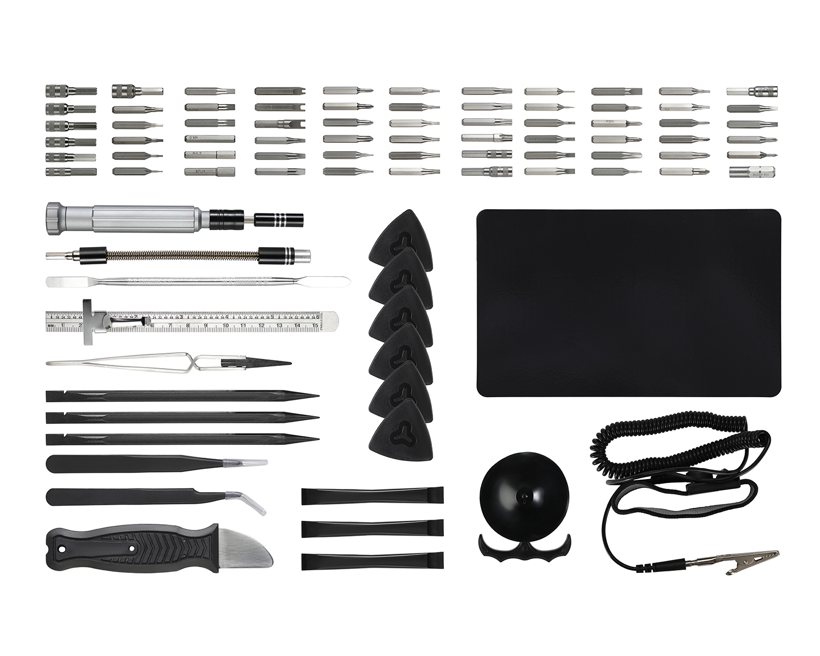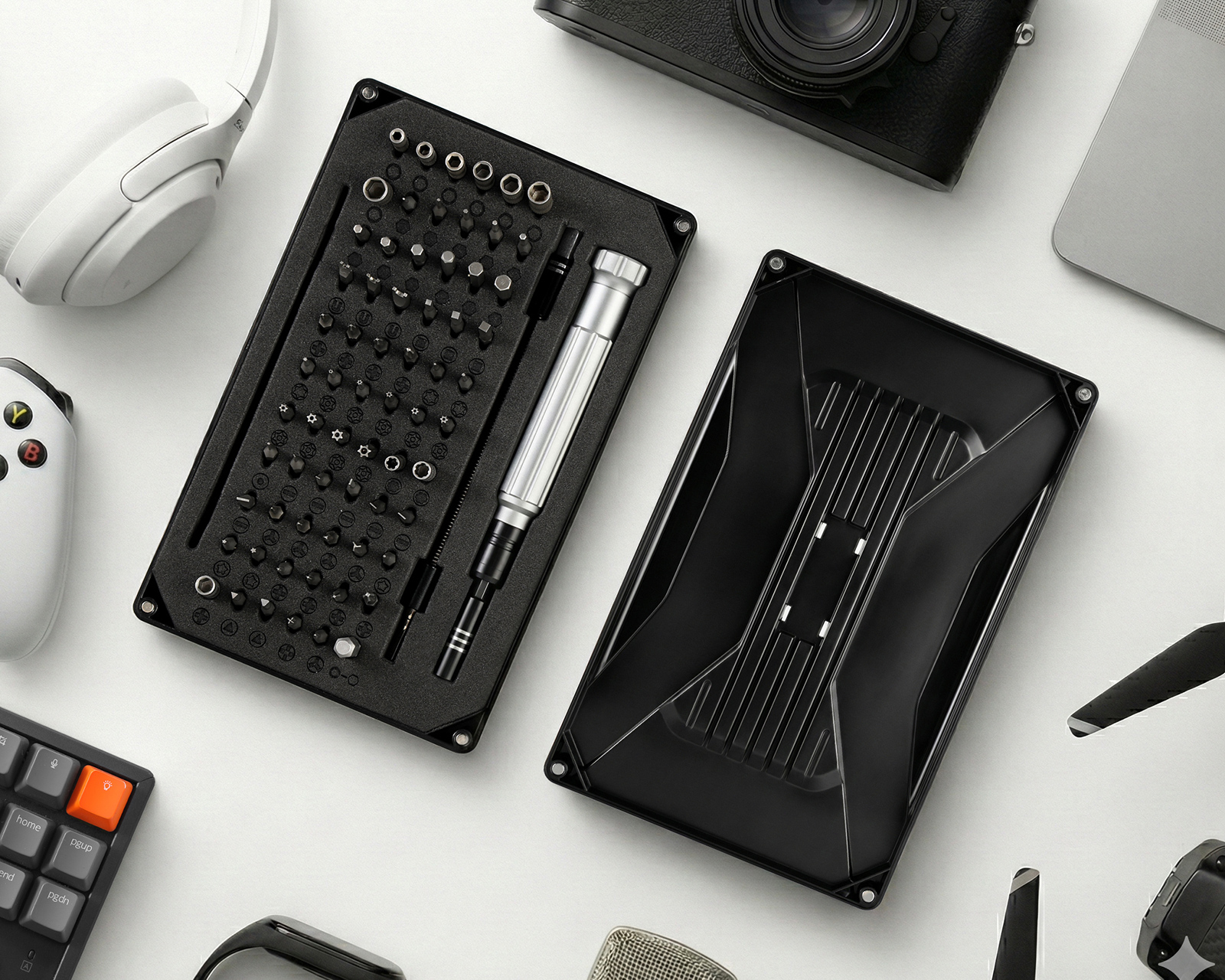 Dette presisjonsverktøysettet og reparasjonssettet for elektronikk fra MaxMount er et komplett 89-delt verktøysett, utviklet for at du skal kunne reparere alt fra smarttelefoner til spillkonsoller og bærbare datamaskiner med profesjonelle resultater. Settets inneholder CRV-presisjonsbiter av høyeste kvalitet som dekker alle tenkelige behov – spesielt for krevende reparasjoner av iPhone, MacBook, bærbare datamaskiner og annen moderne elektronikk.Det ergonomiske aluminiumshåndtaket har en skrudd anti-glid-overflate og er motstandsdyktig mot rust, noe som gir både presisjon og komfort under lange arbeidsøkter. I tillegg til bitene inneholder settet uunnværlige spesialverktøy som pinsetter, bøyeverktøy (spudgers) og et antistatisk bånd, som beskytter sensitive komponenter ved demontering. Alt leveres i en robust og organisert boks som gjør det enkelt å holde orden på hver lille del.
