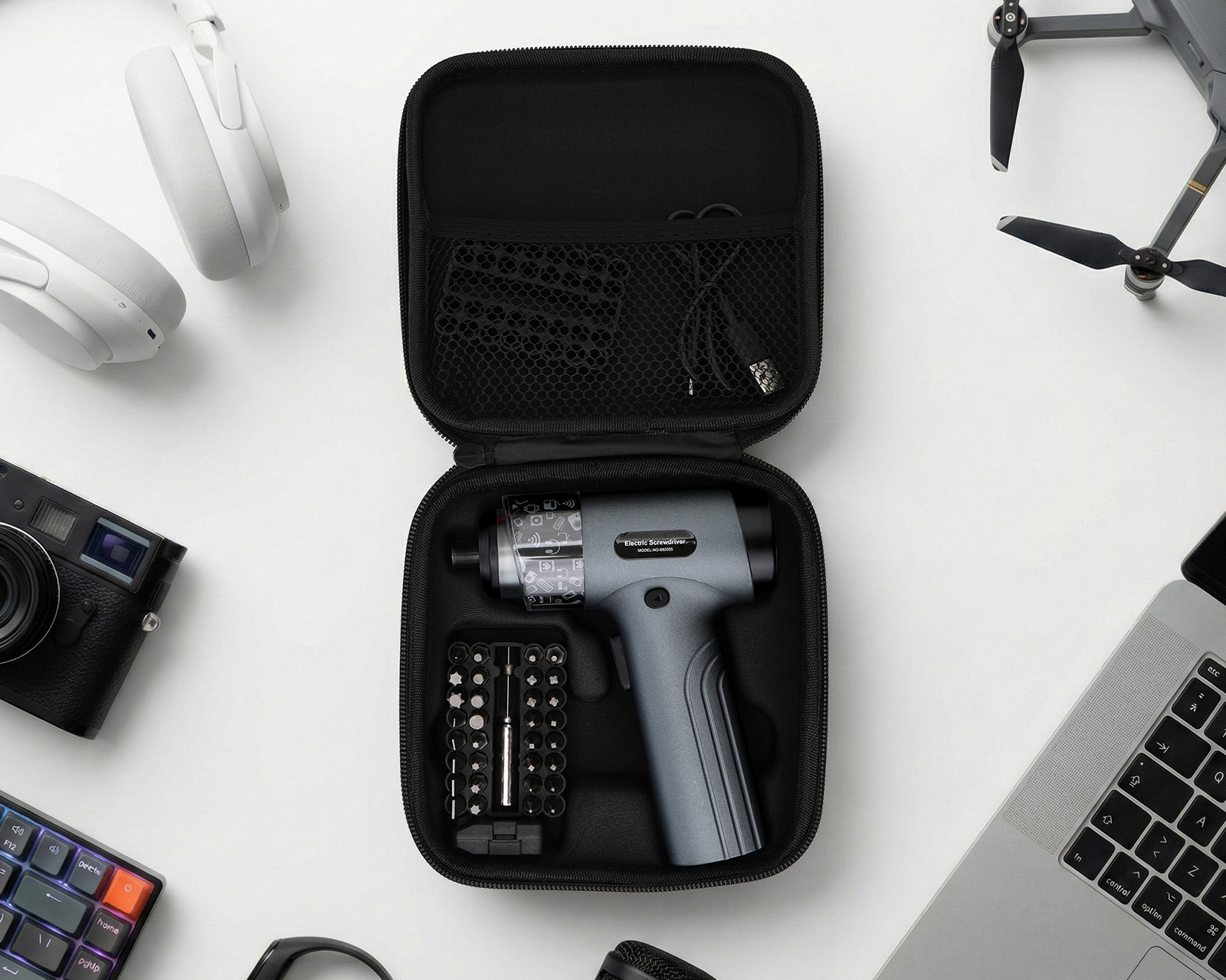 Trådløs presisjonsskrutrekker fra MaxMount, designet for å lette skrutrekking i ulike situasjoner. Den er utstyrt med et sterkt 3.7V, 2500mAh batteri som leverer et imponerende dreiemoment på 5Nm, noe som gjør den ideell for både hjemmebruk og mer omfattende prosjekter. Med 30 forskjellige bits i standard 1/4-tommers størrelse og bygget av slitesterkt S2-stål, kombinerer denne skruvtrekker holdbarhet med høy ytelse.Skrutrekkeren tilbyr ergonomisk design for enkel håndtering, noe som gjør at den kan brukes med én hånd. Den hurtigladende USB til Type-C-kabelen garanterer lang batteritid og rask gjenoppretting av energi. Spesielle funksjoner som den innebygde LED-lampen hjelper deg med å arbeide i svakt lys, mens batteriindikatoren muliggjør sanntidsovervåking av kapasiteten. Klarer hastigheter på opptil 200 omdreininger/minutt, noe som gjør den tilpasningsdyktig til ulike materialer og behov.